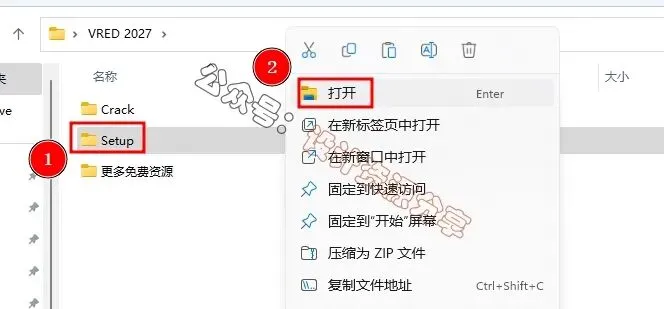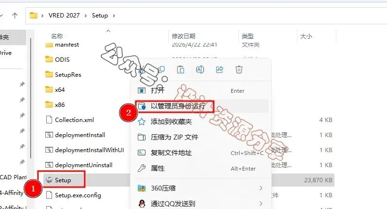 3、找到【Setup】应用程序,右键选择【以管理员身份运行】它5、软件默认安装在C盘,可自定义更改软件安装位置,这里小编选择安装在D盘;点击【安装】7、软件安装成功,点击【稍后】,点击右上角【关闭按钮】。8、回到 VRED 2027 文件夹,找到【Crack】文件夹,右键【打开】它10、找到【AdskUAT】文件,右键选择【以管理员身份运行】它11、找到并选中【VRED Professional 2027】程序,再点击【安装】13、回到桌面,右键桌面上的【Autodesk VREDPro 2027软件图标】,点击【打开文件所在的位置】15、以上就是 Autodesk VREDPro 2027软件安装的全过程,要是对你有帮助的话,请为小编点个赞!