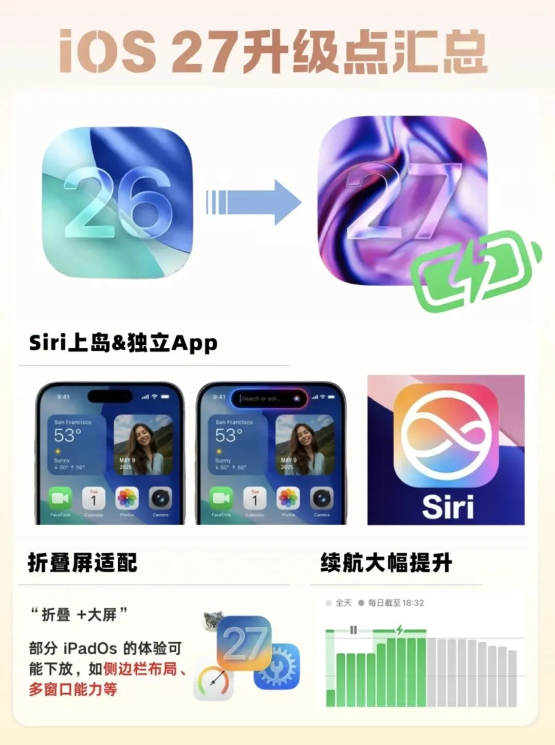 真的不夸张,iOS 27每一个升级都踩在果粉心坎上!续航优化直接封神,坐等正式版更新啦~