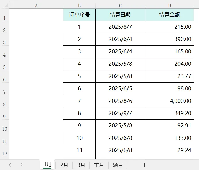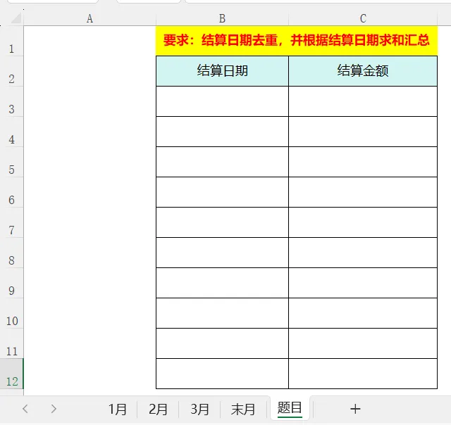 题目:请将几张表的日期去重复值,然后根据日期进行求和汇总。