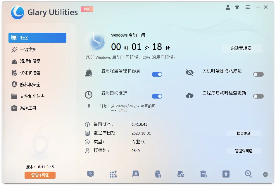 如果你是一个讨厌繁琐操作、希望电脑“点开即反应”的效率党,Glary Utilities Pro 绝对是 Windows 系统上最值得常驻的工具之一。