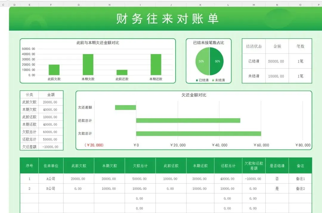 发现一套实用的全自动Excel对账单模板,带公式,财务套用一键对账发现一套实用的全自动Excel对账单模板,带公式,财务套用一键对账!会计月末对账比较繁琐,总是加班加点!今天小帮手在这里带来了一套常用的月末对账必备的:全自动Excel对账单模板,带有公式,往来款对账或者供应商对账、或者客户对账等等,直接编辑套用即可!具体操作界面展示在下文了! 往来对账单模板(自动查询)应收应付往来账管理系统……全自动Excel对账单表格模板,就先展示到这里了。财务人员需要编辑套用的,可按照下面方式自行获取!🔽🔽🔽