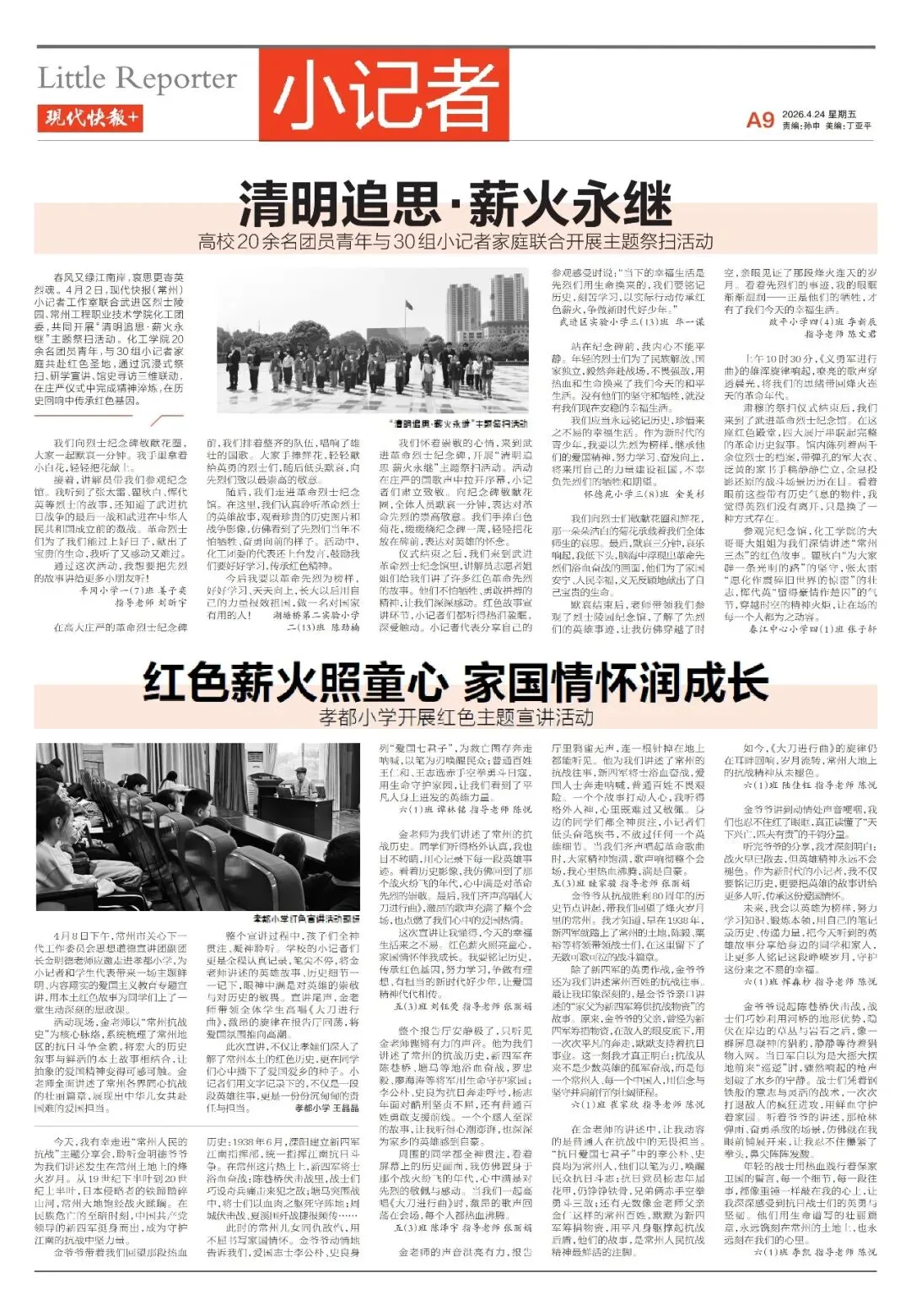 今天,我们《现代快报·小记者》栏目展示了快报小记者清明主题祭扫和孝都小学红色主题活动投稿,快来看看精彩内容吧。