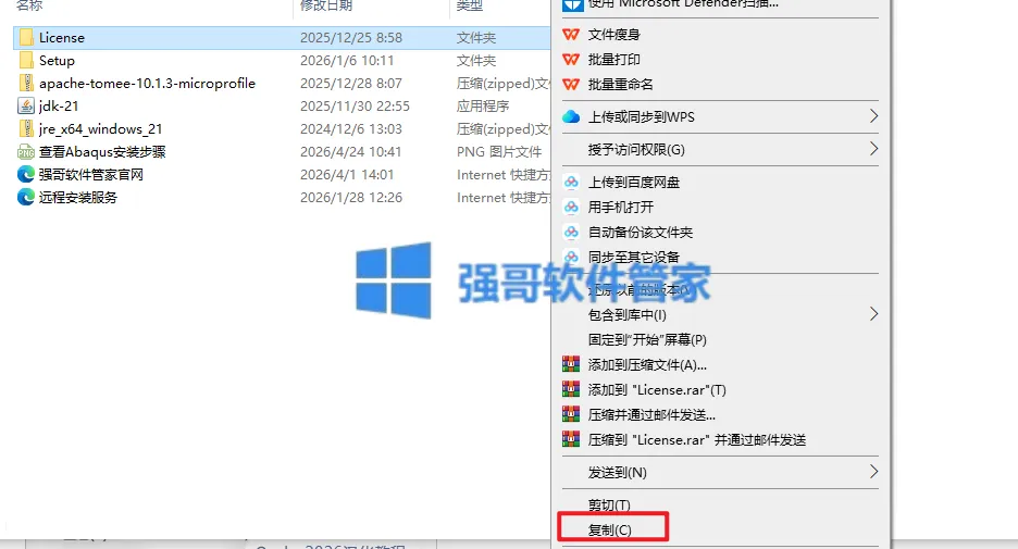 7.打开安装包,鼠标右击【License】文件夹选择【复制】