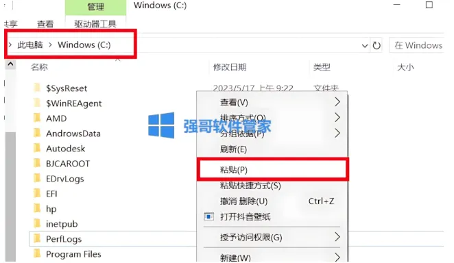 8..打开电脑C盘,鼠标右击空白处选择【粘贴】