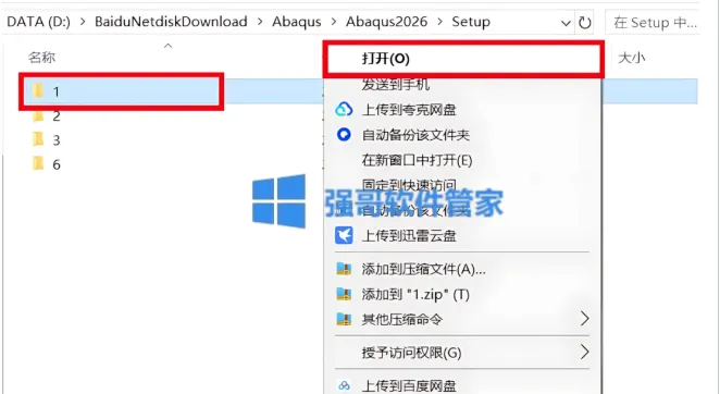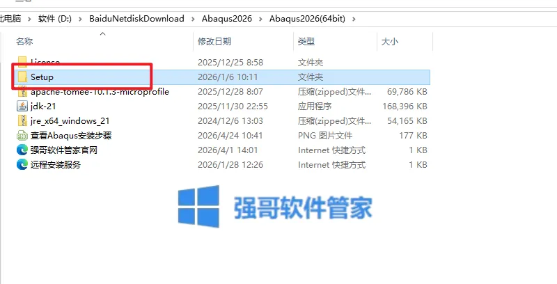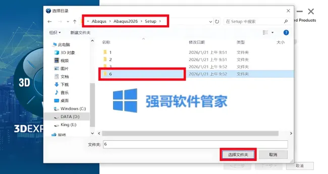 24.打开安装包解压后的【Abaqus2026(64bit)】文件夹中的【Setup】文件夹,选中【6】文件夹,点击【选择文件夹】