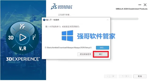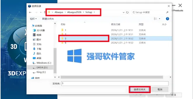 54.打开安装包解压后的【Abaqus2026(64bit)】文件夹中的【Setup】文件夹,选中【3】文件夹,点击【选择文件夹】
