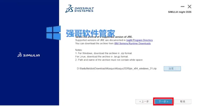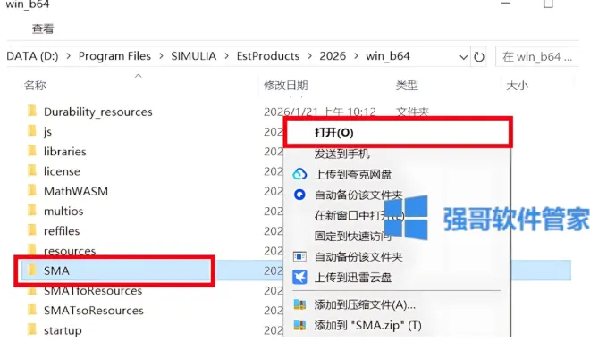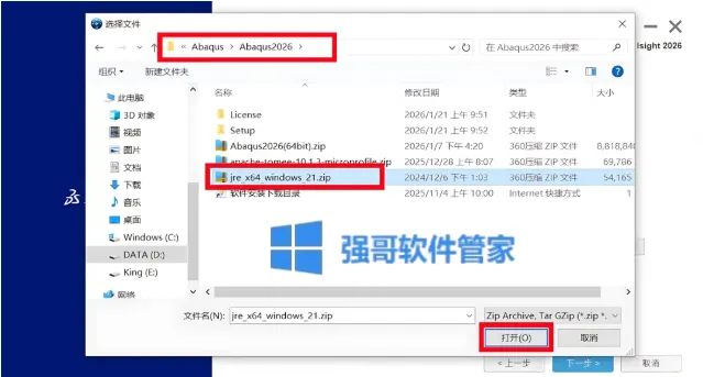 63.打开安装包解压后的【Abaqus2026(64bit)】文件夹,选中【jre_x64_windows_21】压缩包,点击【打开】