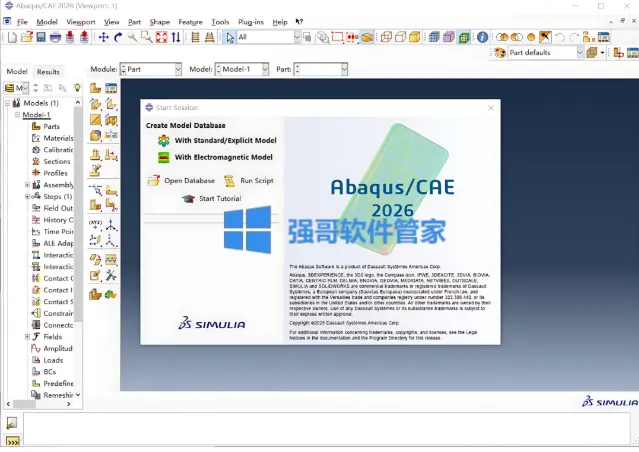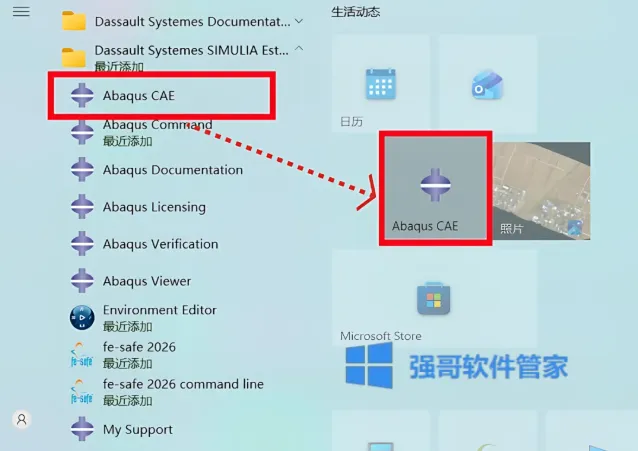 73.创建桌面快捷方式:①点击桌面任务栏中的【开始图标】>点击【所有应用】②双击展开【Dassault Systemes SIMULIA Established Products 2026】文件夹③将【Abaqus CAE】图标拖到电脑桌面