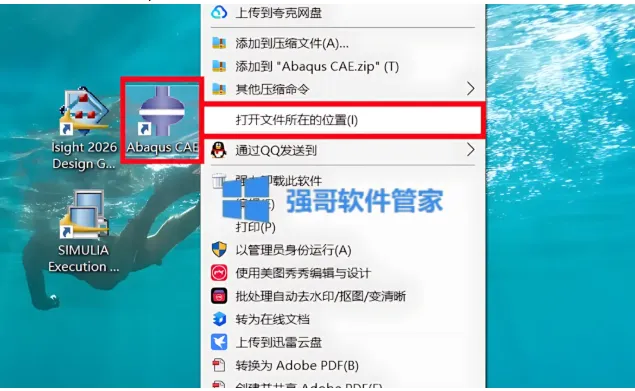 1.鼠标右击桌面【Abaqus】图标选择【打开文件所在的位置】