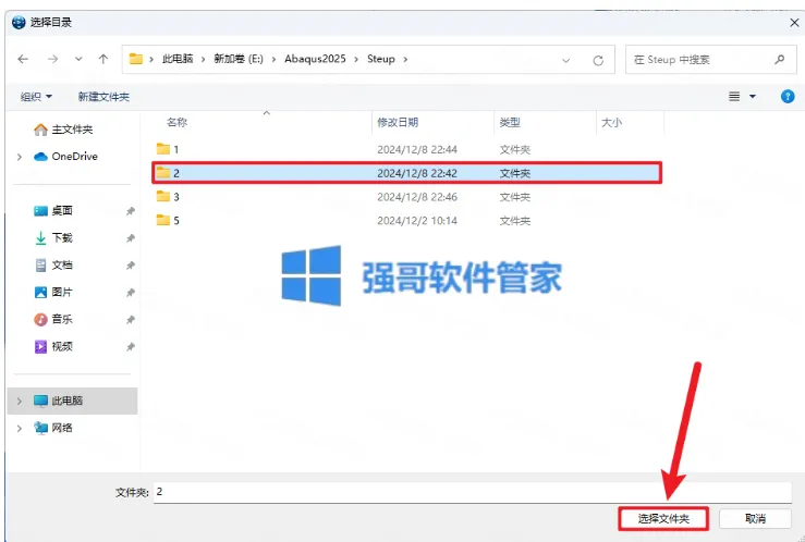 23.打开安装包解压后的【Abaqus2025(64bit)】文件夹中的【Setup】文件夹,选中【2】文件夹,点击【选择文件夹】