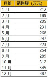 首先在 Excel 中录入完整的基础数据(示例为某电商店铺 2025 年各月销售额,可替换为你的业务数据):