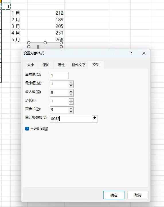 验证效果:单击滚动条的左右箭头,C2 的数值会同步变化,动态区的月份和销售额会自动更新,说明公式和控件绑定成功。