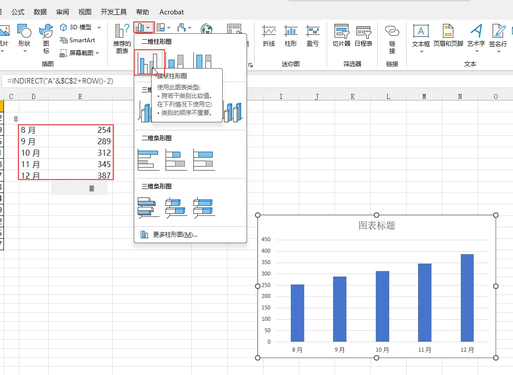 用INDIRECT函数搭建动态数据源,让数据跟着滚动条的数值自动更新;