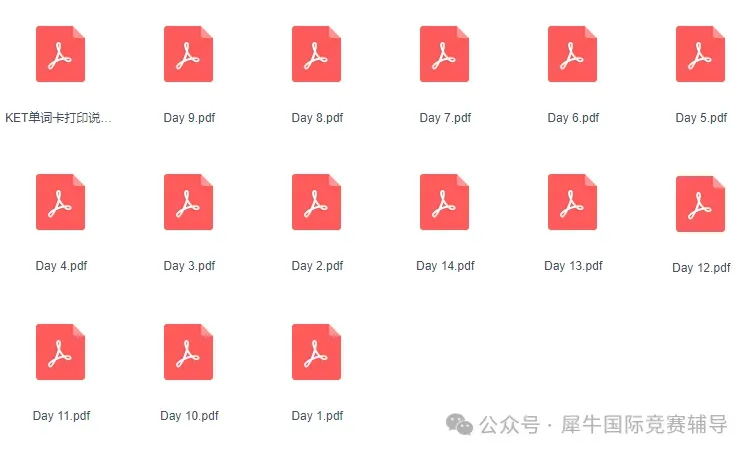 词汇是KET考试的基石,选对资料、用对方法,才能事半功倍。这份14天核心词汇全套电子版资料,拒绝无用功,精准攻克词汇难点,无需再花费时间搜集整理,所有备考所需一应俱全。