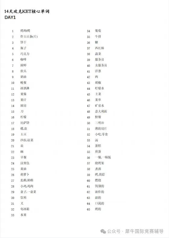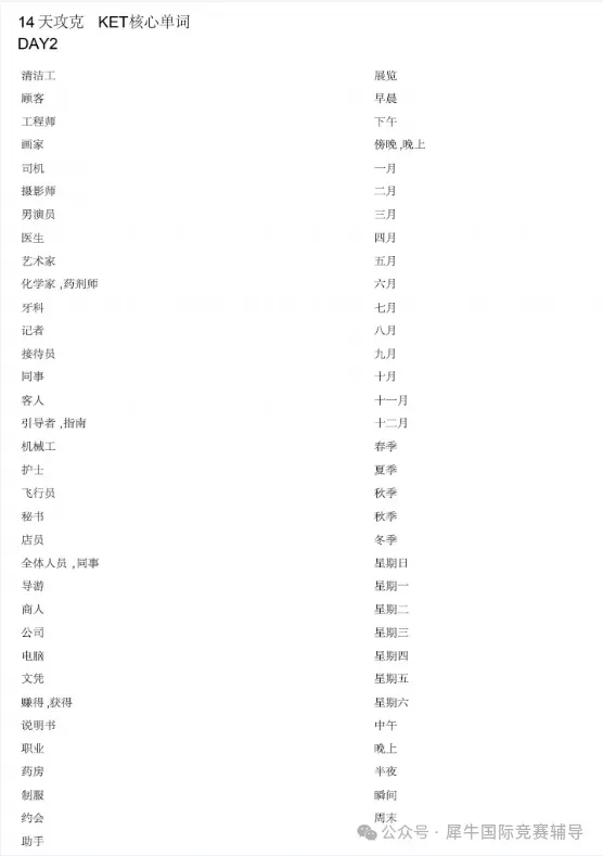 评论区/后台回复【14天KET词汇表】领取