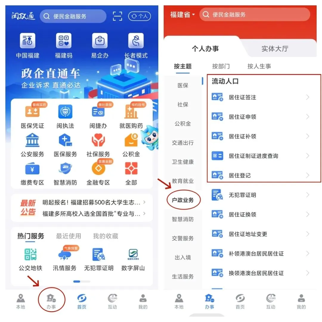 打开“闽政通”APP→点击“办事”→选择“户政业务”→选择“流动人口”→选择“办事站点”→点击“在线申报”→选择办理情形后确认选择→按照指引办理即可。闽政通