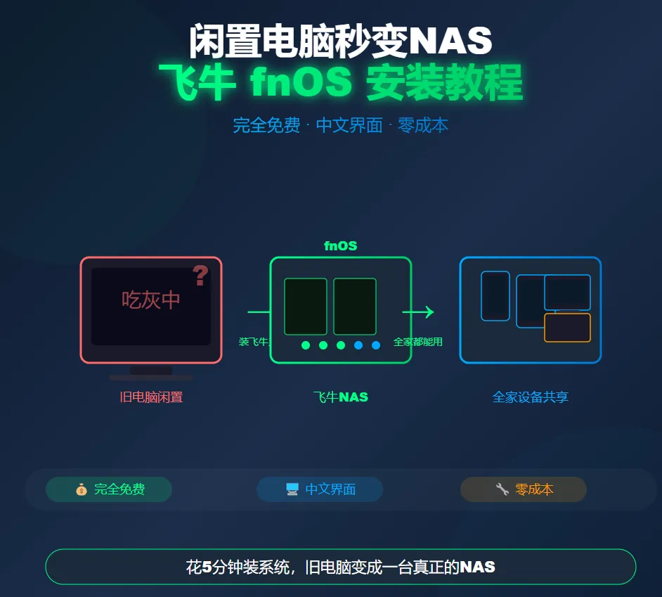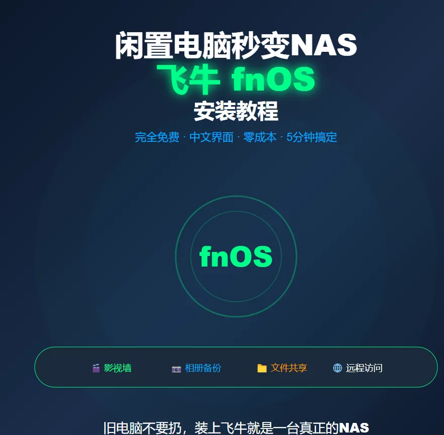 说人话就是:**你不用买群晖、不用买绿联,拿旧电脑装个飞牛系统,就变成NAS了。**