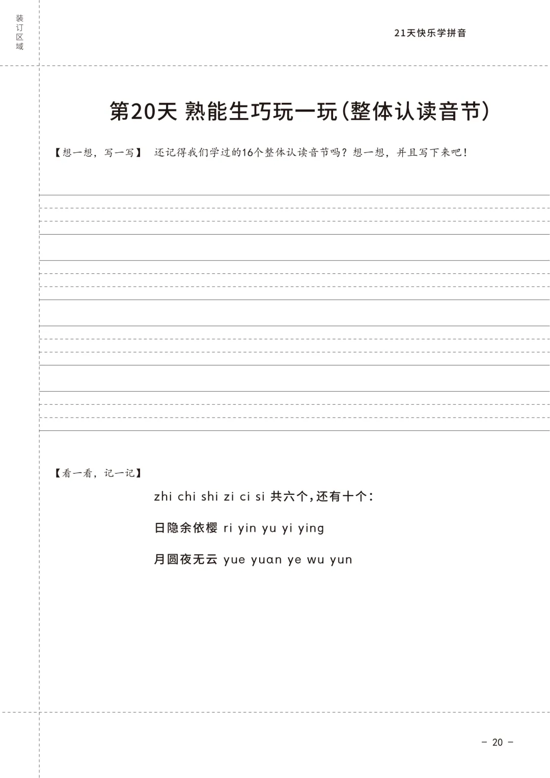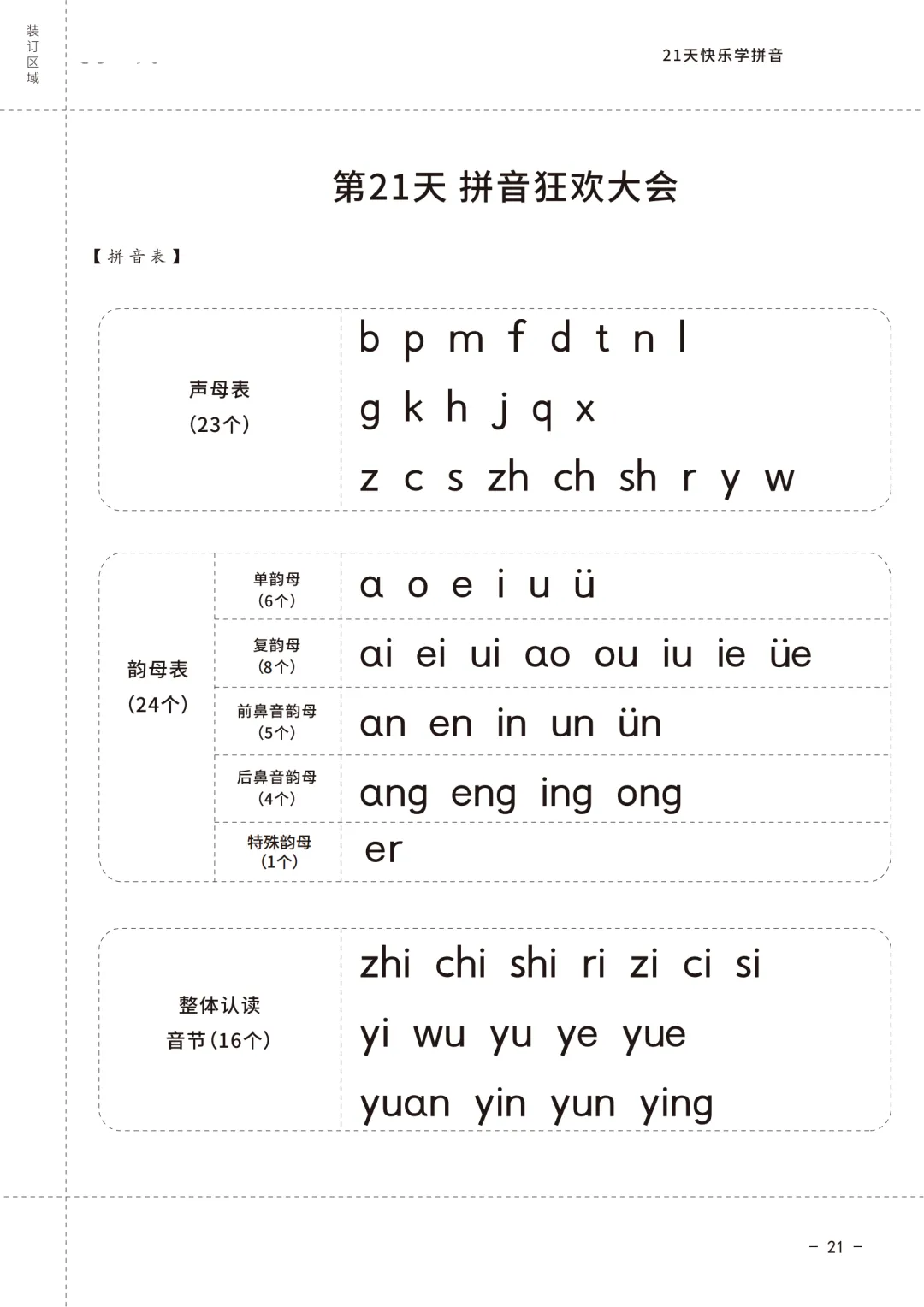 幼小衔接 | 21天快乐学拼音(电子版可打印)家里有娃马上升一级,拼音可以练一练了,每天学习一点点,为一年级入学做准备!(温馨提示:文末领取电子版方式)……*篇幅有限,仅展示部分幼小衔接21天快乐学拼音扫码添加回复所在区+年级即可免费获得完整版↓↓↓◆幼小衔接 | 暑假作业每日一练,可打印!◆ 人民日报总结:适合中小学生的高效学习法,建议收藏!◆ 幼小衔接 | 21天快乐学拼音(电子版可打印)◆ 免费领!南京3-6年级往年期中真题合集(附答案)◆ 南京小学生都参加哪些杯赛?附测试真题!◆ 【必读书单】1-6年级经典书单+电子版书籍免费领◆ 【免费领取】南京幼小衔接计算每日一练!*来源:南京幼儿通