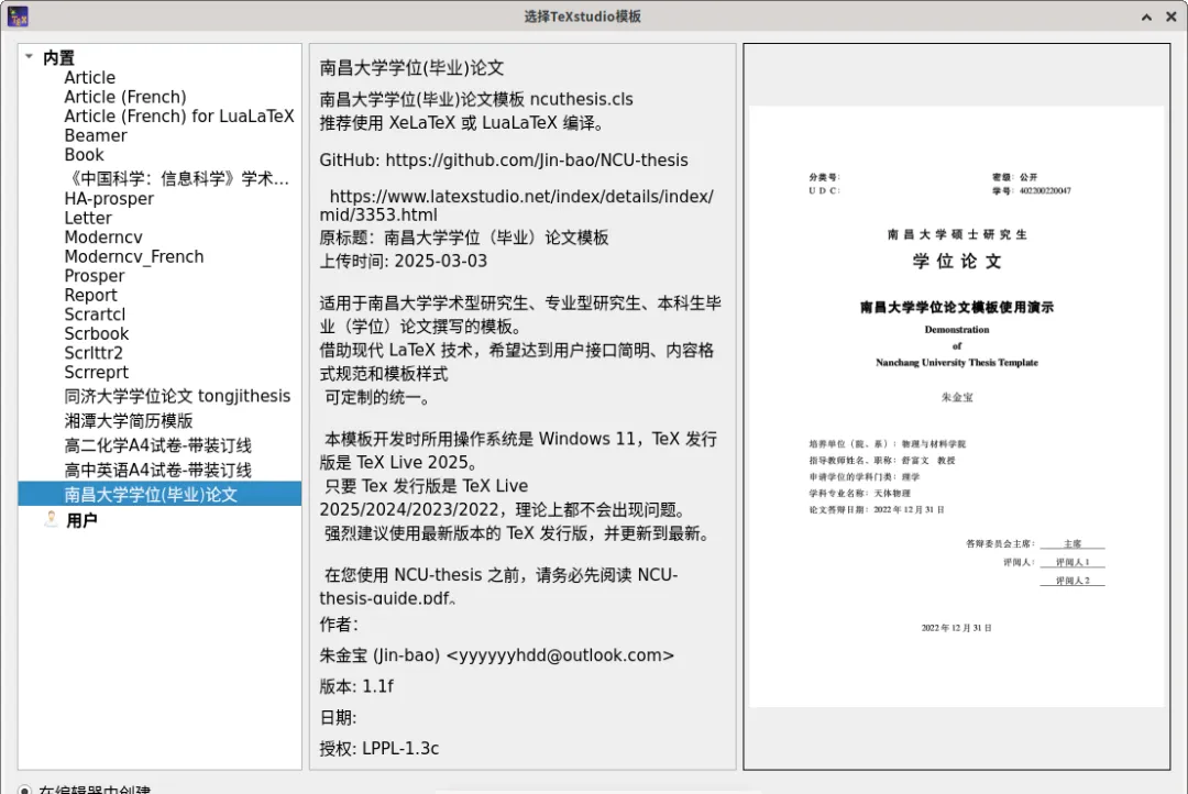 附图:在 TeXstudio 编辑器中,从模板创建: