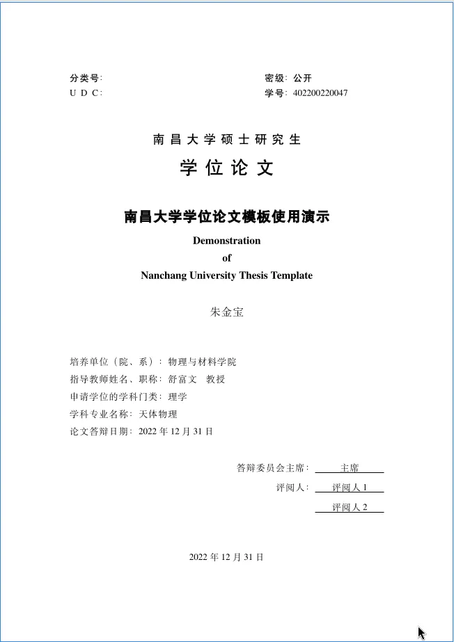 南昌大学学位(毕业)论文模板 ncuthesis.cls 及样例