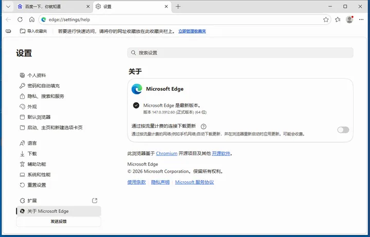 如原有的Edge为Chromium内核的新版,则进行升级操作。