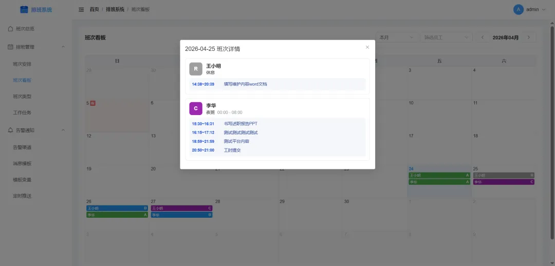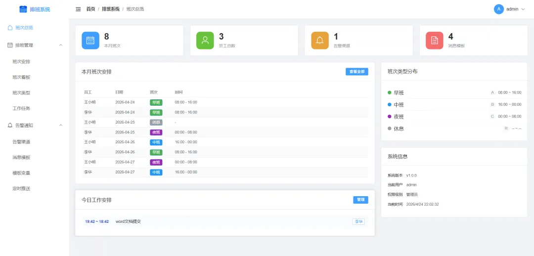 班次系统:清晰的面板,任务的统一规划、班次一目了然