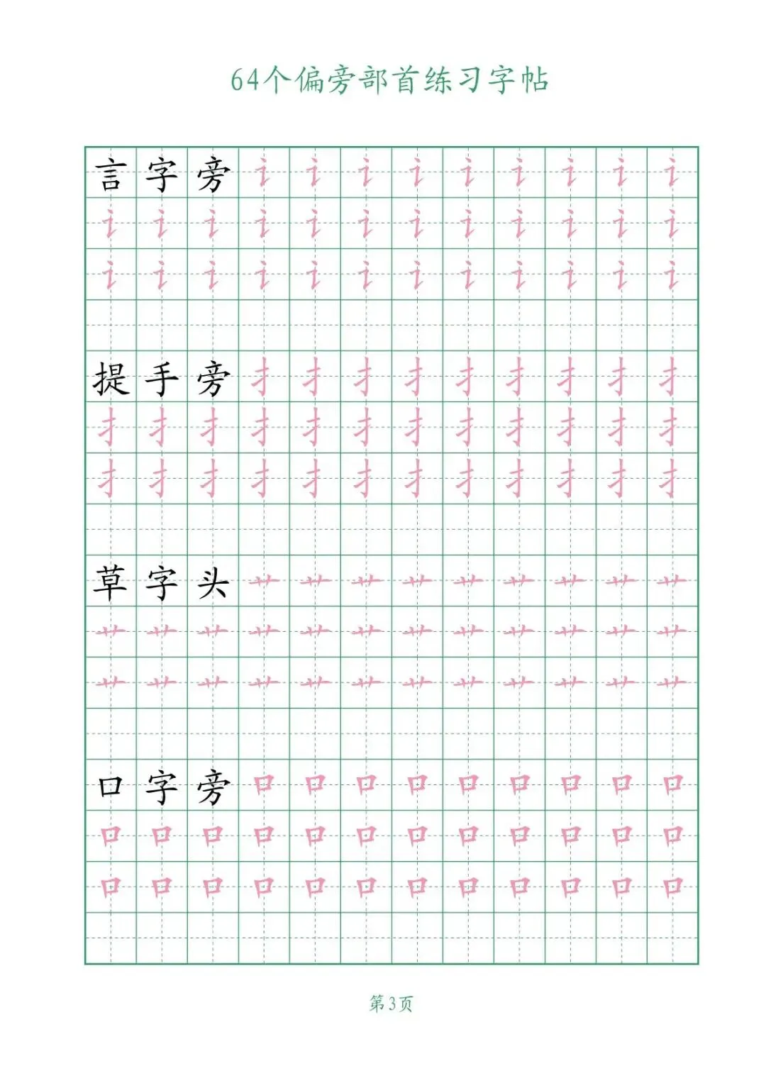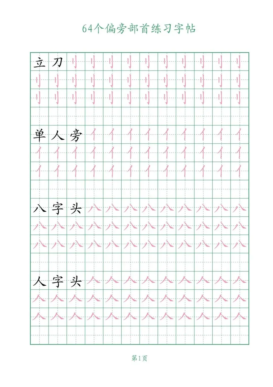 大家好,今天给大家分享的是64个偏旁部首练习字帖【可下载可打印】,关注我,每天持续分享更多的优质学习资料。