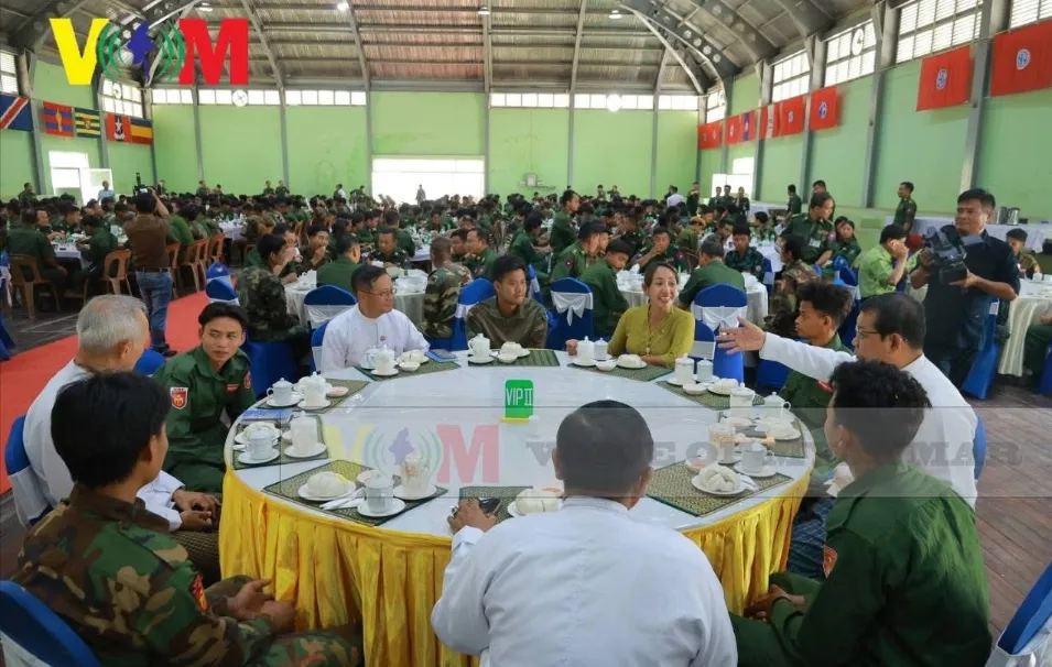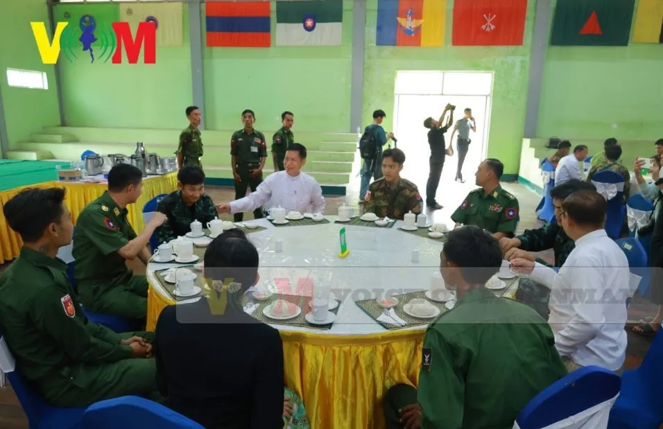 2026年4月24日曼德勒讯。4月24日今天上午在位于曼德勒皇城的中部军区司令部,又有PDF集体缴械投诚:男470名,女47名,共517名。这些武装人员来自曼德勒各地PDF:MDY PDF、TNLA、PLA、抹谷PDF、德贝金PDF、兴谷PDF、木德雅PDF、彬乌伦PDF、敏建PDF、当达PDF、胶瑟PDF、胶布当PDF、苗PDF、娘乌县PDF、巴扣谷PDF、实皆县PDF、瑞波县PDF、学生武装(SRF)、AA、ACDF、ABSDF、21BANGAN PDF、德业PDF、墨梅PDF、囊丘PDF、BURMA FEDRAL COLUMN KIA、SAF、NSSA、YRF、内比都PDF、仁安羌PDF等,他们还带来了不少武器弹药。曼德勒省长吴谬昂与中部军区司令等负责人热情接待了他们,设宴款待,最后将他们交给家长。@VOICE OF MYANMAR