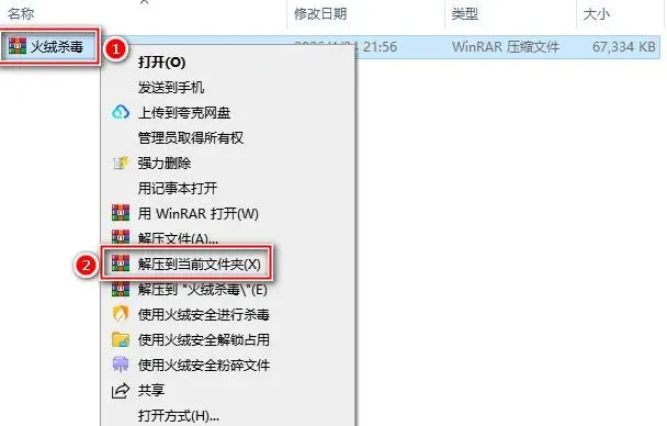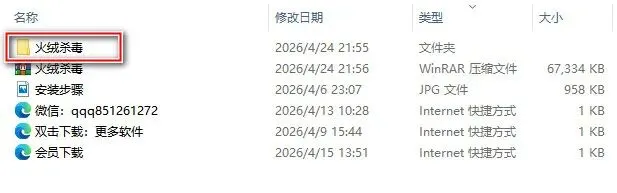 2.鼠标双击打开解压后的文件夹【火绒杀毒】。