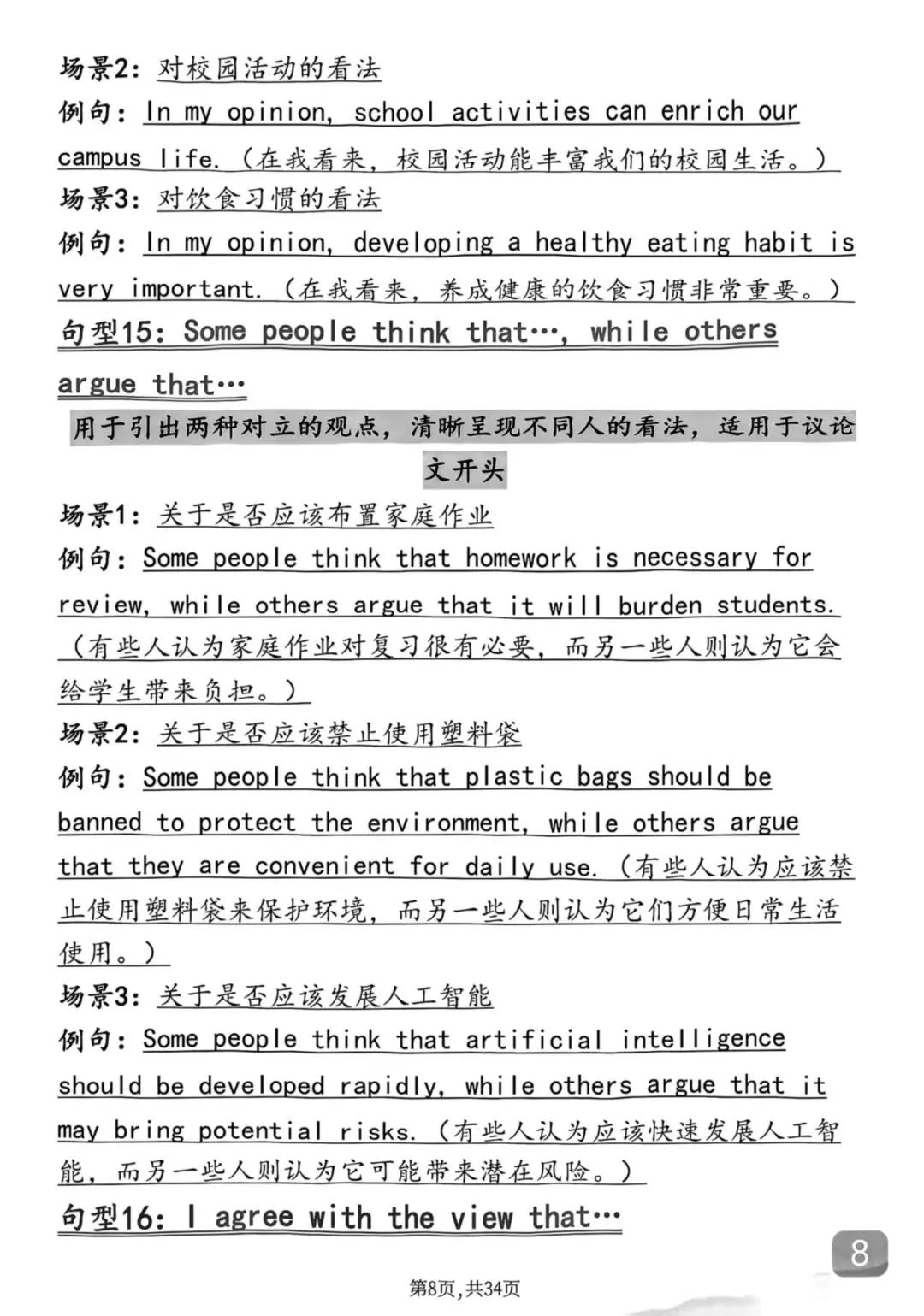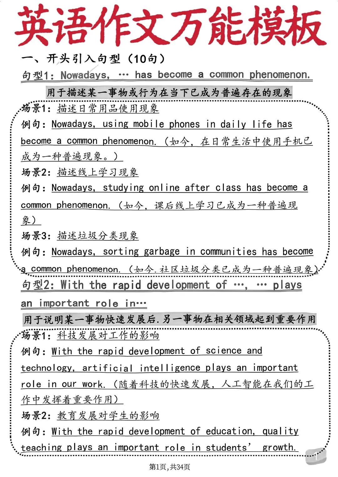 可以打印出来直接抄的英语作文万能模板(很全很详细)