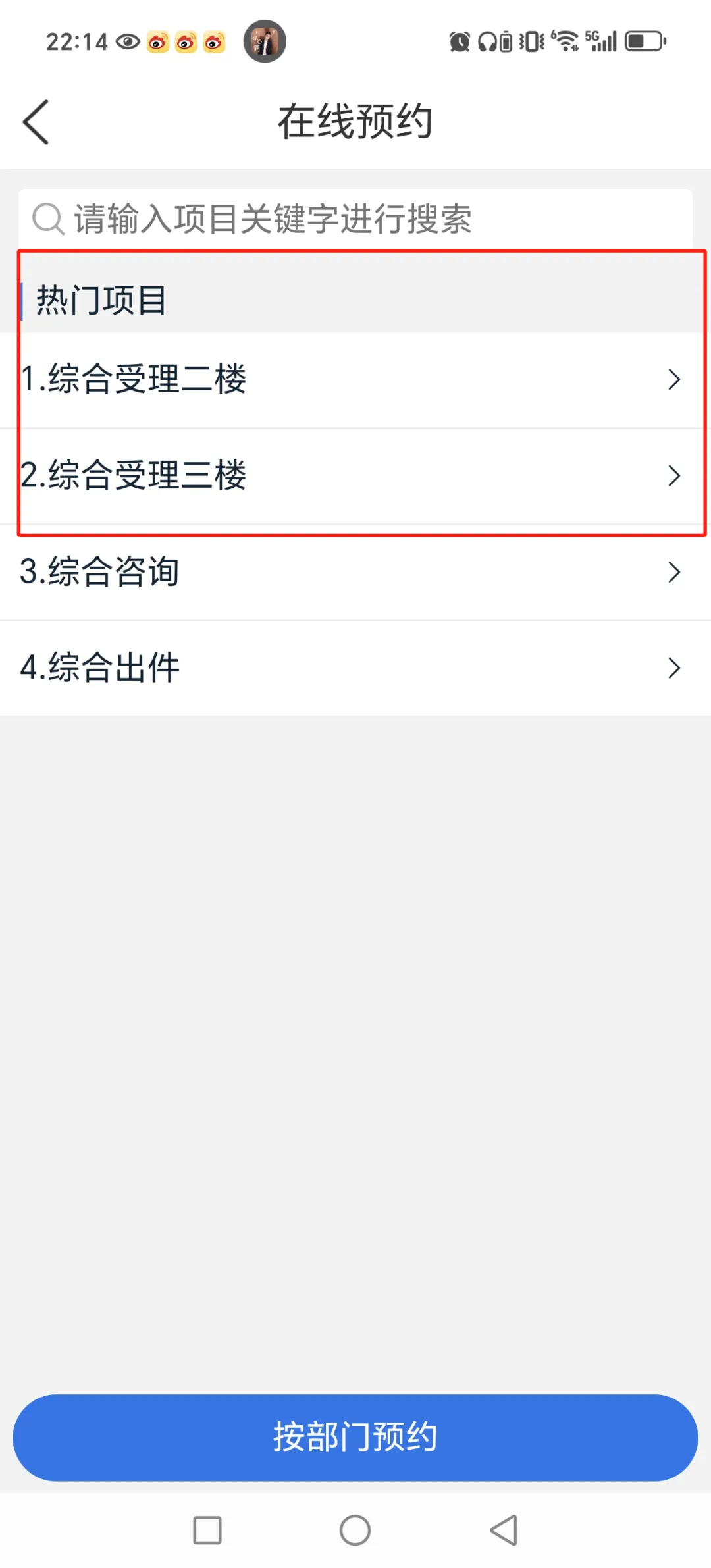 红色框内“社会保障服务厅”可以选择,其他没有这项业务。