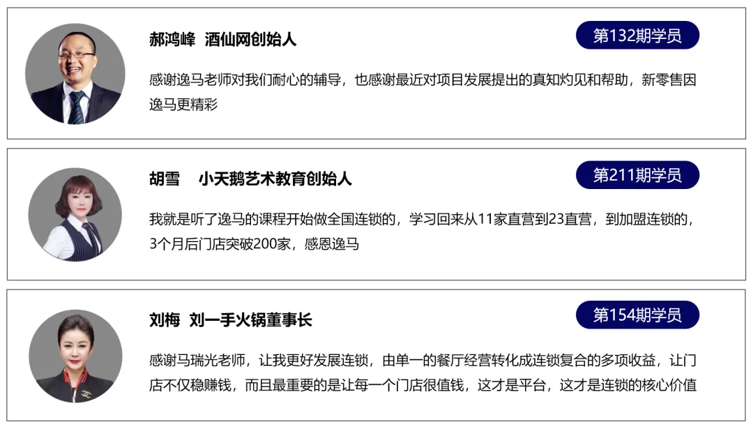 适合参会对象:连锁企业的老板、核心高管。一家企业建议3-6人参加。