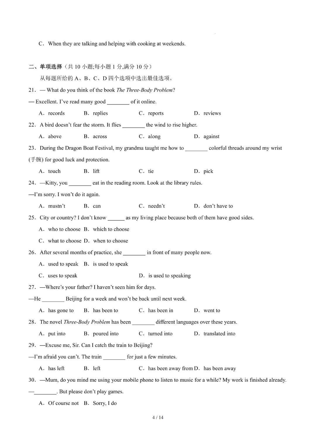 【译林版】26年八年级下册英语《期中模拟卷 附答案》完整高清电子版可打印
