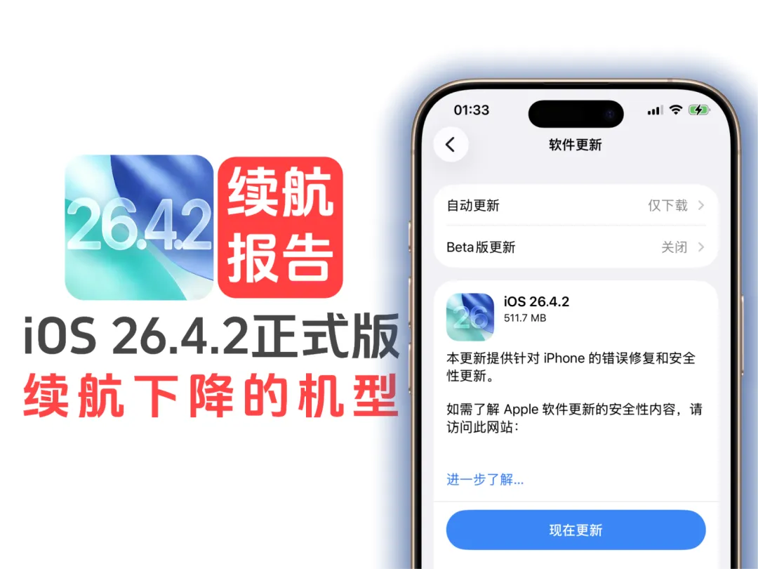 4月25日消息:哪些机型千万别升级iOS 26.4.2正式版,续航报告来了!