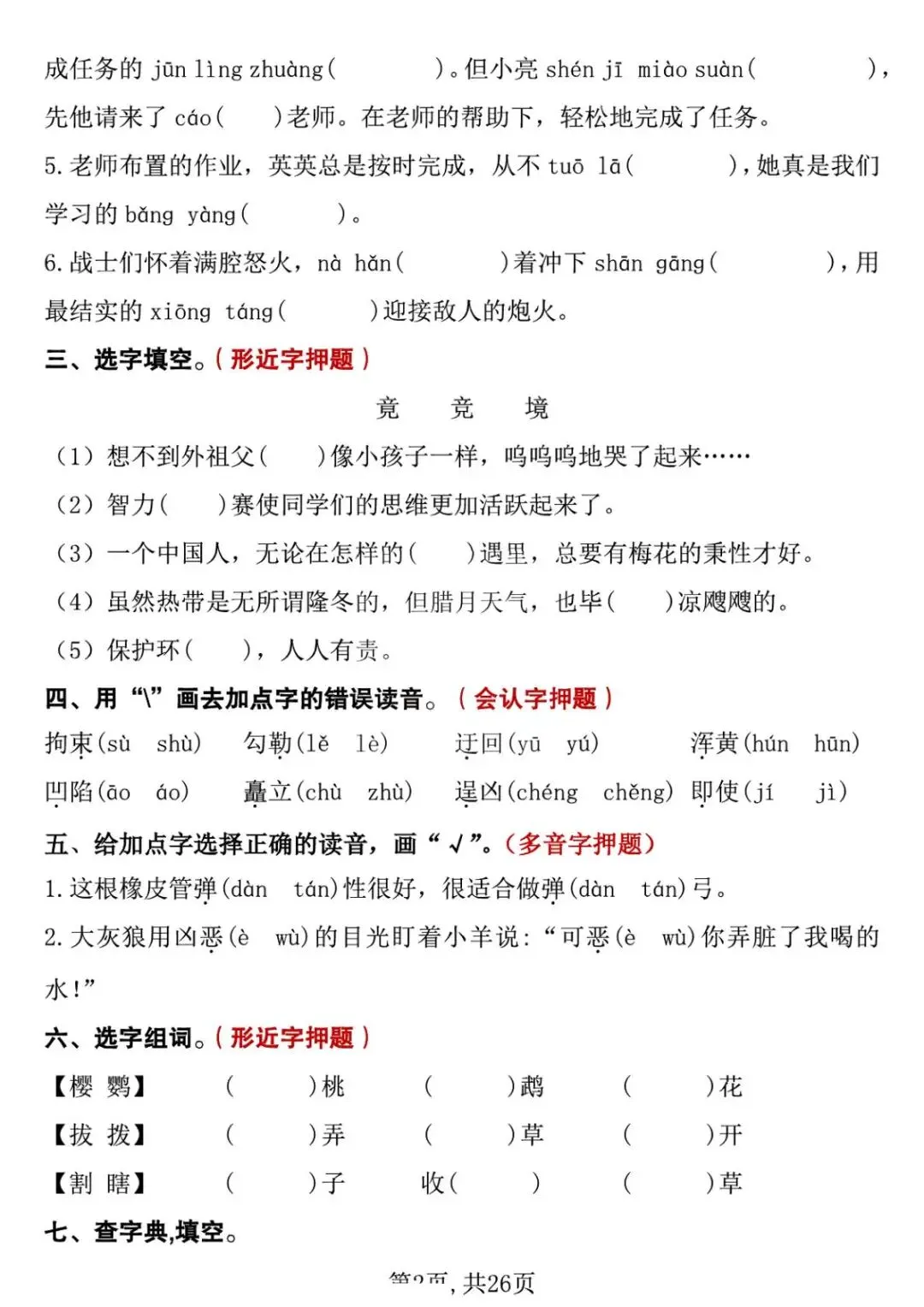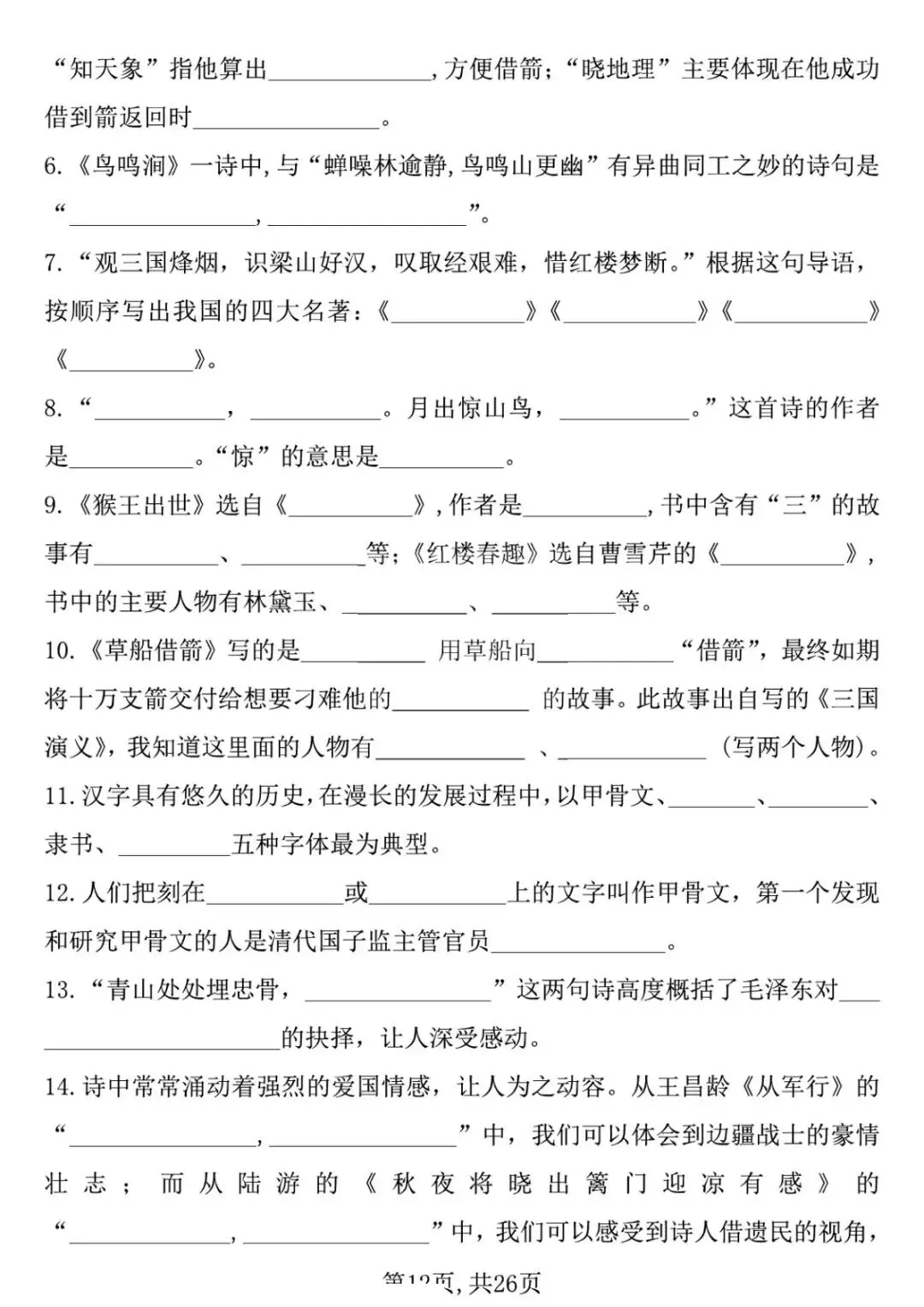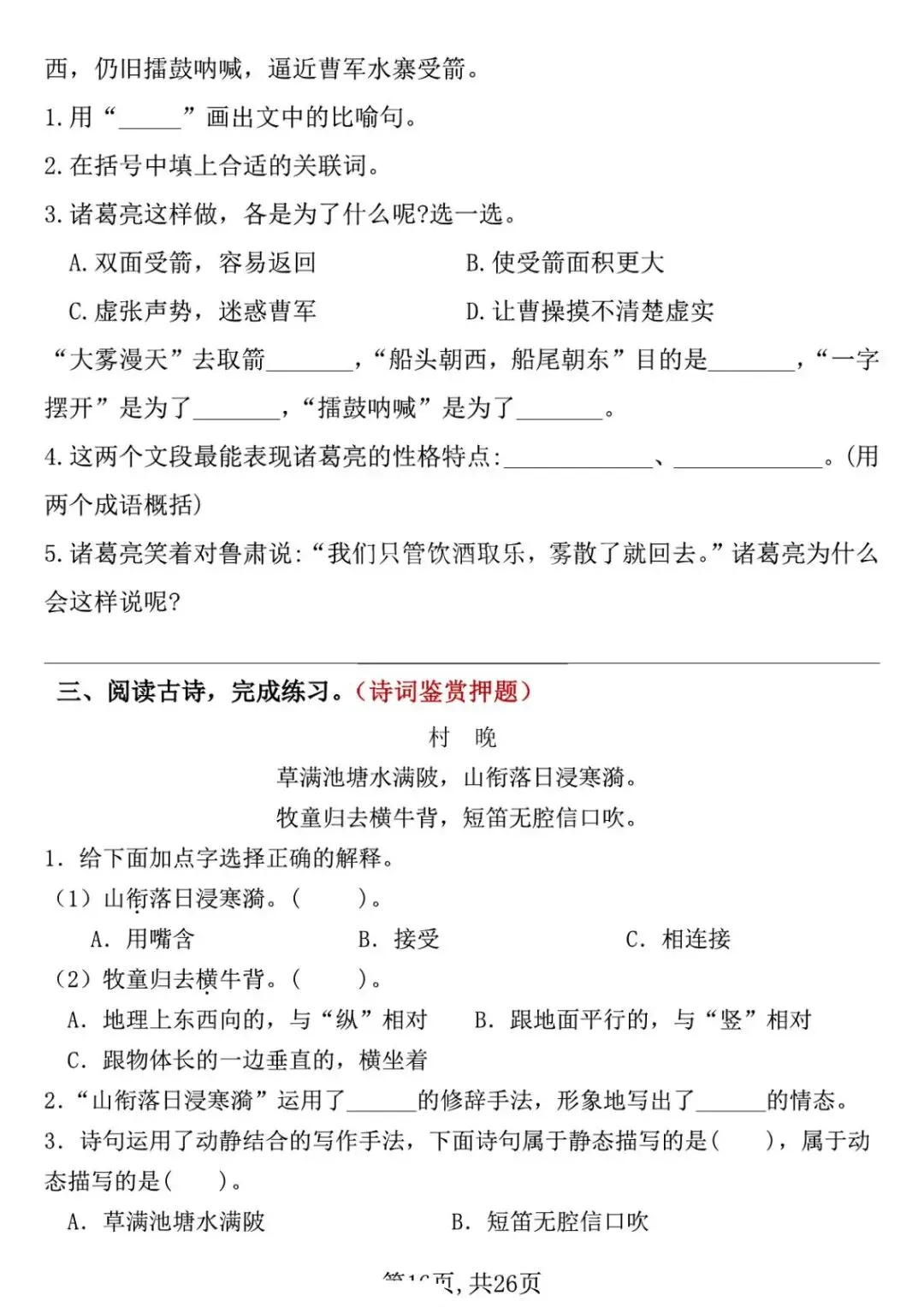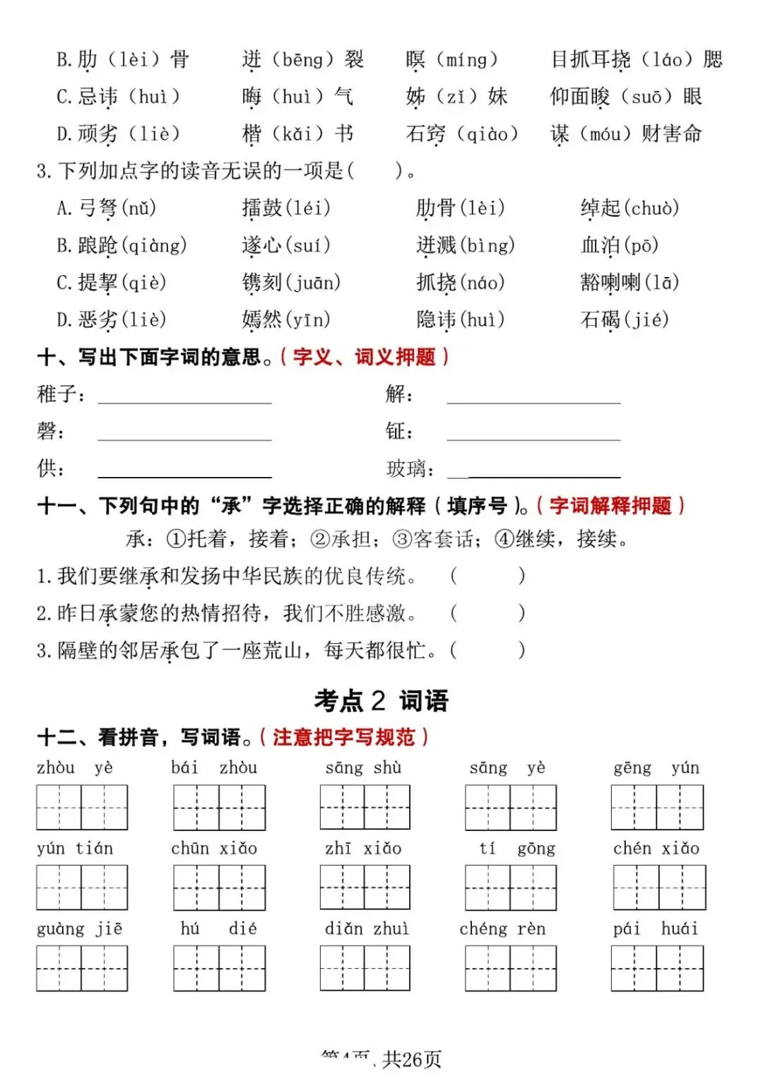 五年级下册语文期中复习专项押题版,含答案共26页,电子版可下载打印。