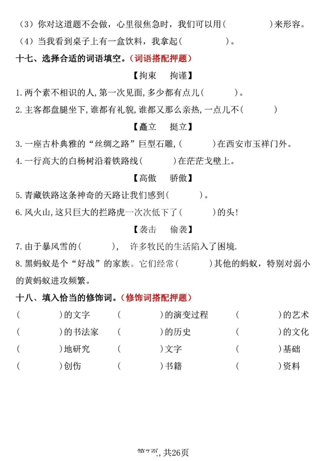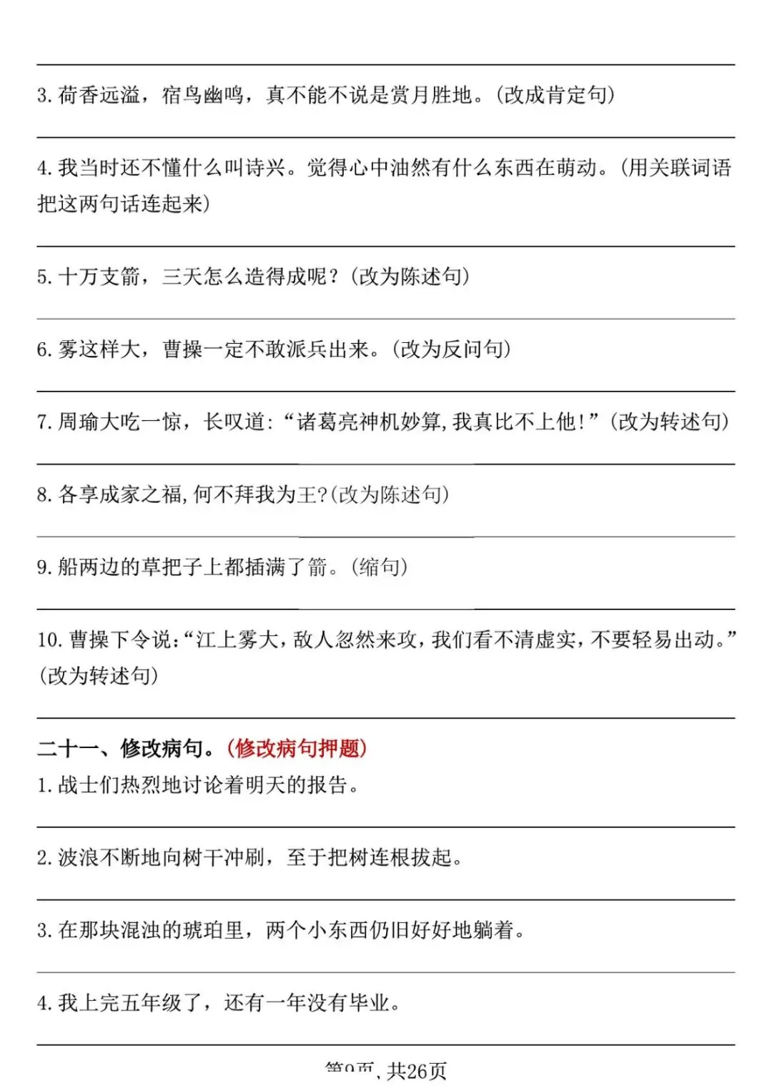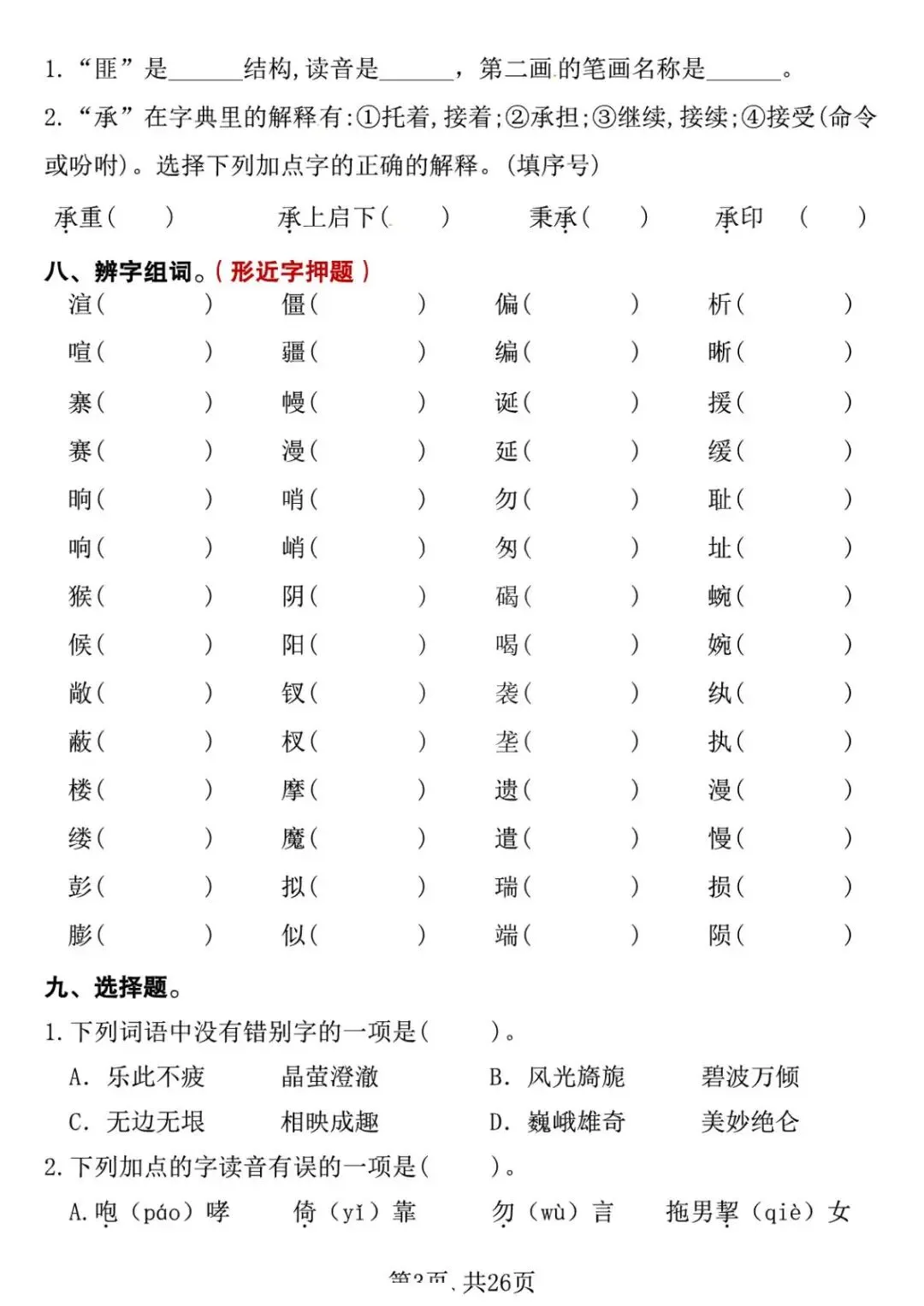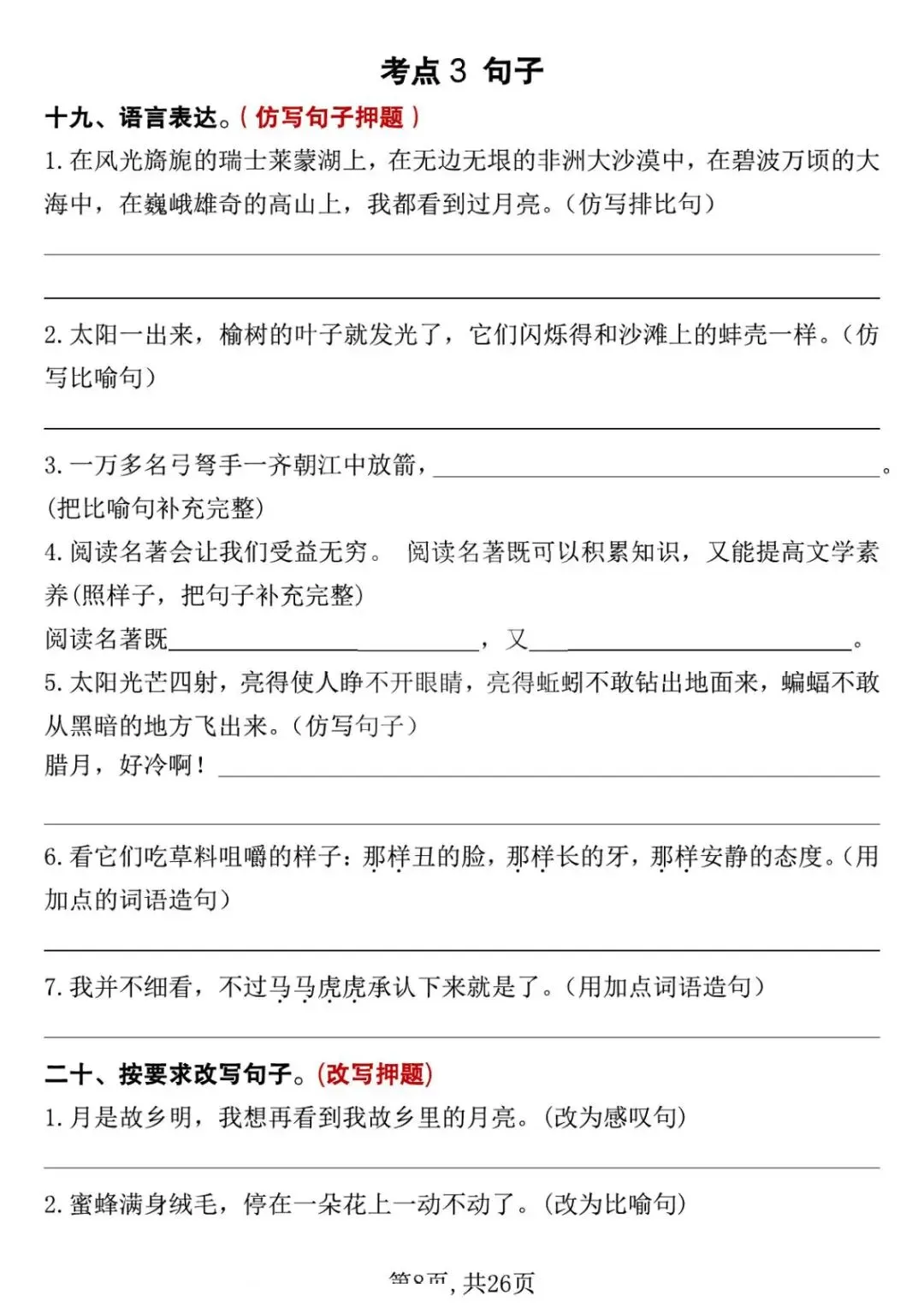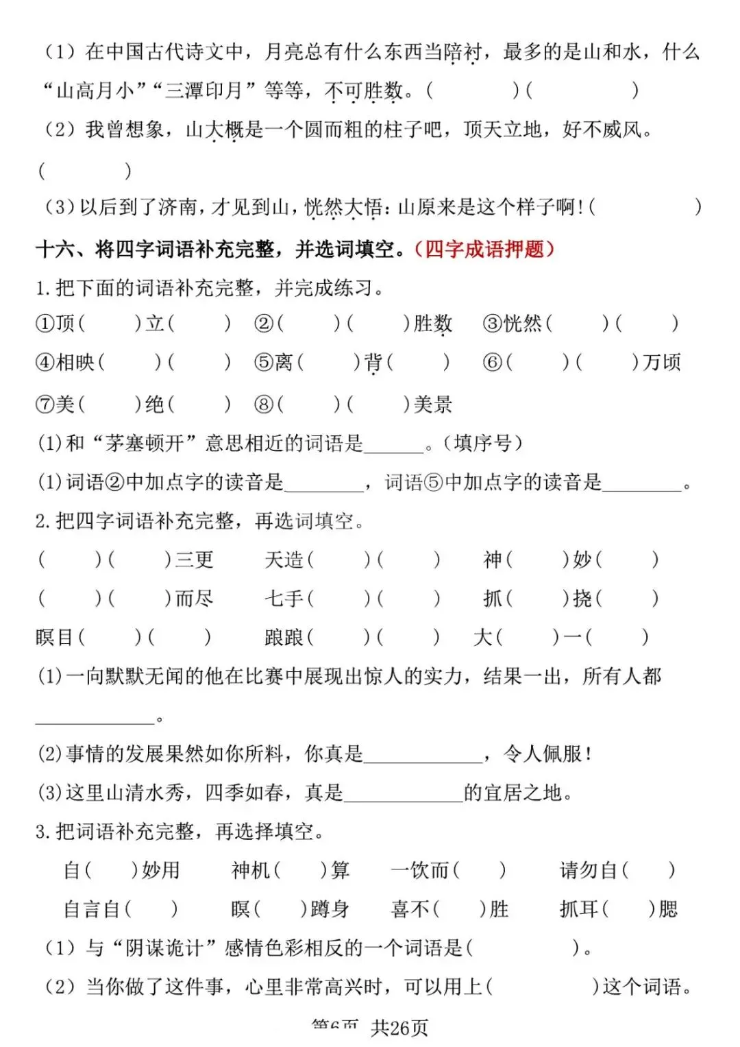 五年级下册语文期中复习专项押题版,含答案共26页,电子版可下载打印。