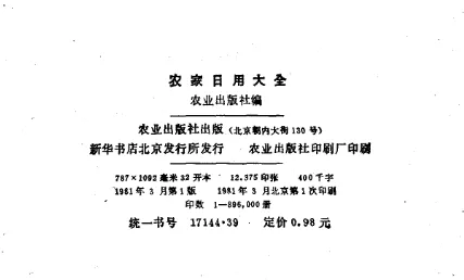 1981年实用丛书《农家日用大全》,PDF网盘旧书分享