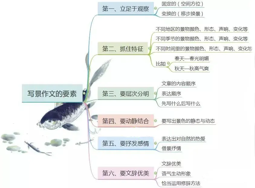 第三、在写季节的作文中,低年级学生可以简单把景色分为植物景观(花草树木等)、气象景观(水、雨、风、阳光、温度等)、动物景观、人类景观。每一类内容占一段。加上开头引题,结尾抒情,一共写六段就可以了。