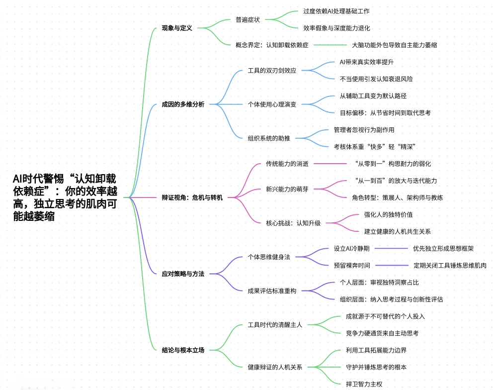 因此,在这个AI触手可及的时代,最大的智慧或许不是拒绝它,也不是沉迷于它,而是与之建立一种健康的、辩证的关系:尽情利用它拓展能力的边界,同时警醒地守护并锤炼自己思考的根。