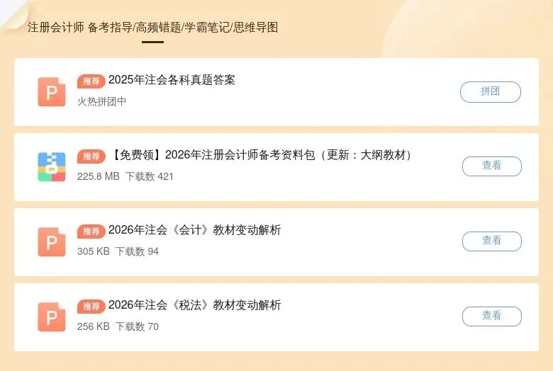 点击下图一键免费获取2026年cpa学习资料包,包含教材变动解读、高频考点、思维导图、知识点精讲、模拟试题、历年真题解析等核心内容,帮助考生实现科学备考。