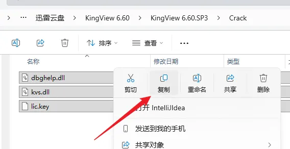 34.返回之前解压的【组态王6.60.SP3】文件夹,双击打开【Crack】文件夹,全选该文件夹下的全部文件,鼠标右键点击【复制】。