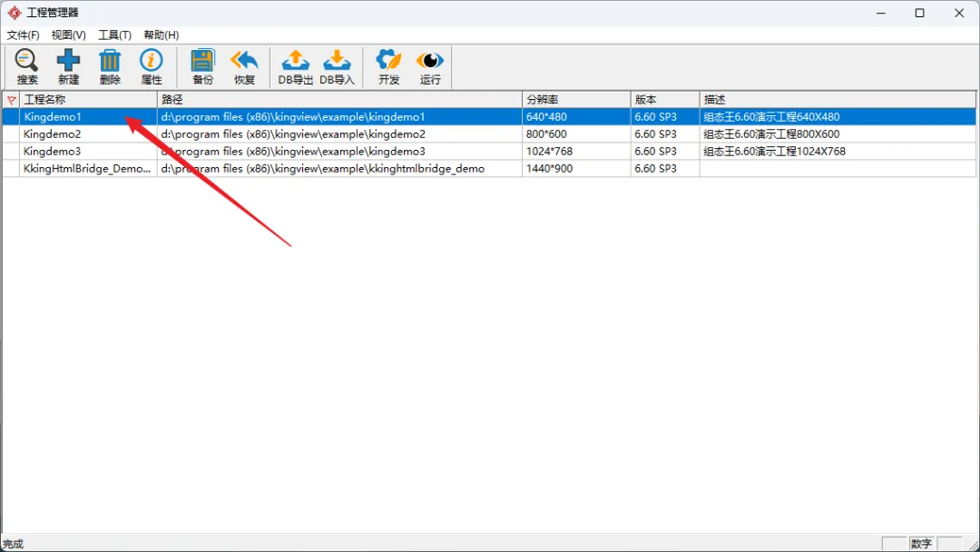 39.双击【kingdemo1】。