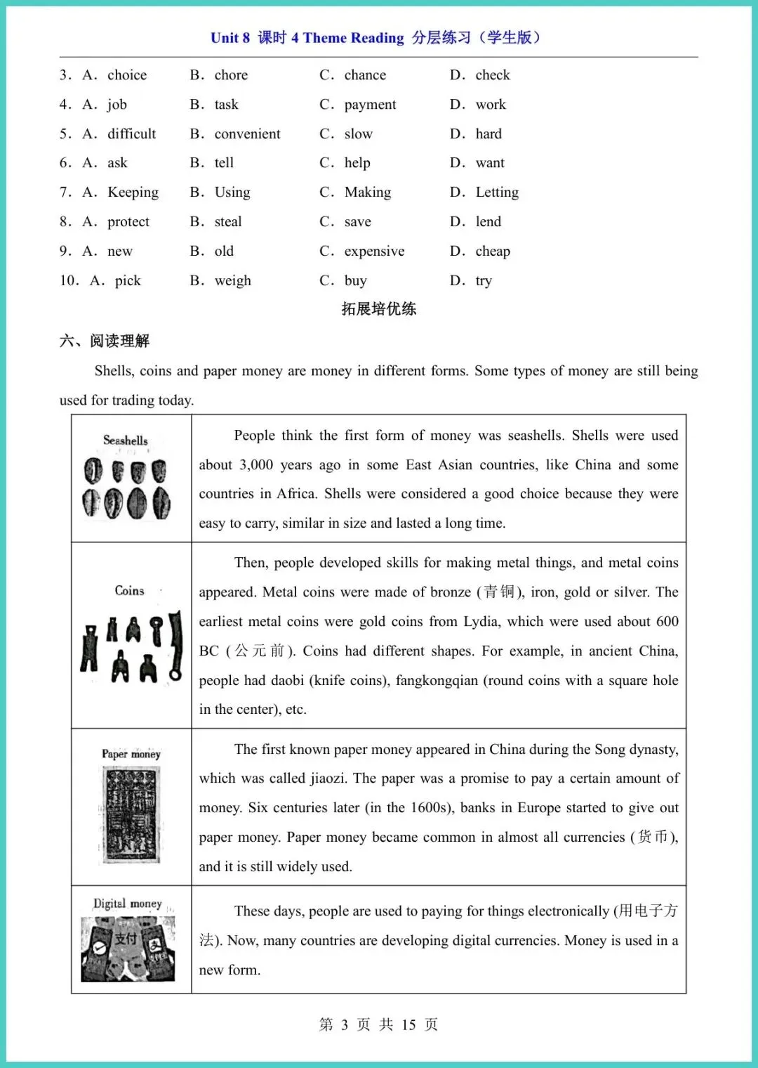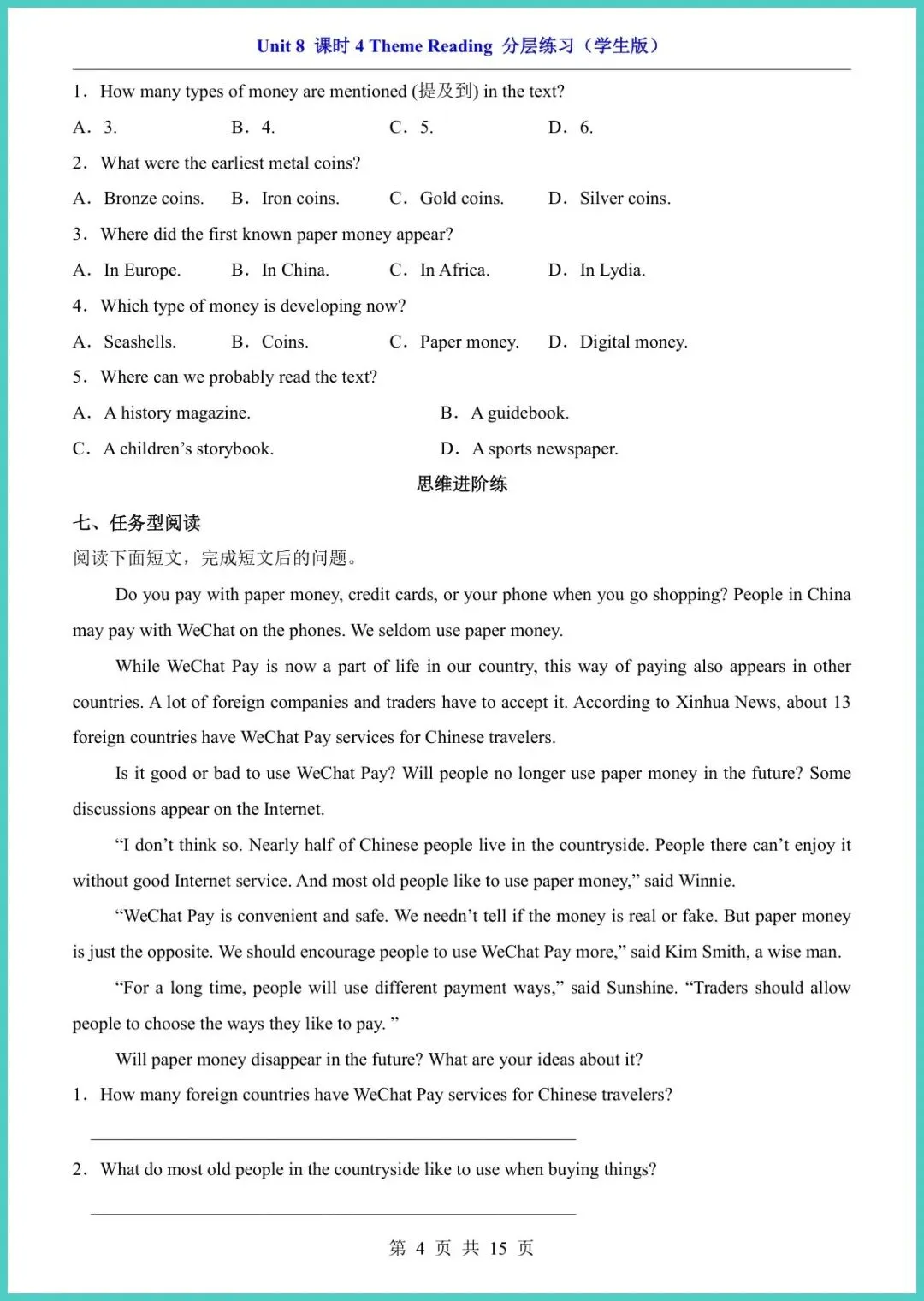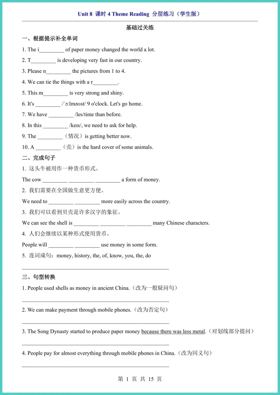 26春仁爱版八年级下册英语Unit8课时4分层练习,15页精编电子版新鲜出炉!基础巩固能力提升思维拓展三阶设计,紧扣“Have you read Treasure Island?”重点词汇、过去完成时与阅读策略,扫码即听原版音频,每题配思路点拨,孩子先测再学,薄弱点一目了然,15分钟完成一页,英语成绩悄悄涨!想让孩子期末阅读满分?快打印出来陪TA练!