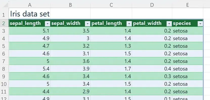 本文示例使用鸢尾花数据集,可在此下载该示例工作簿:
