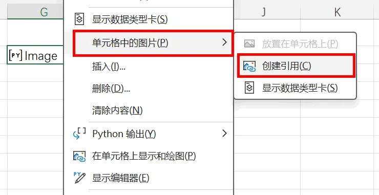 也可以在该单元格中单击鼠标右键,从快捷菜单中选择“单元格中的图片——创建引用”,如下图5所示。