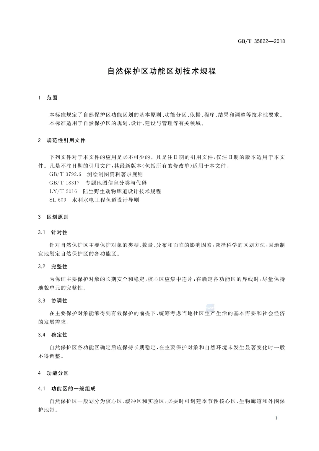 (附pdf)《自然保护区功能区划技术规程》GB/T 35822-2018(现行有效)