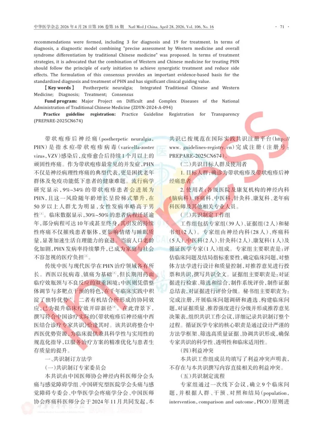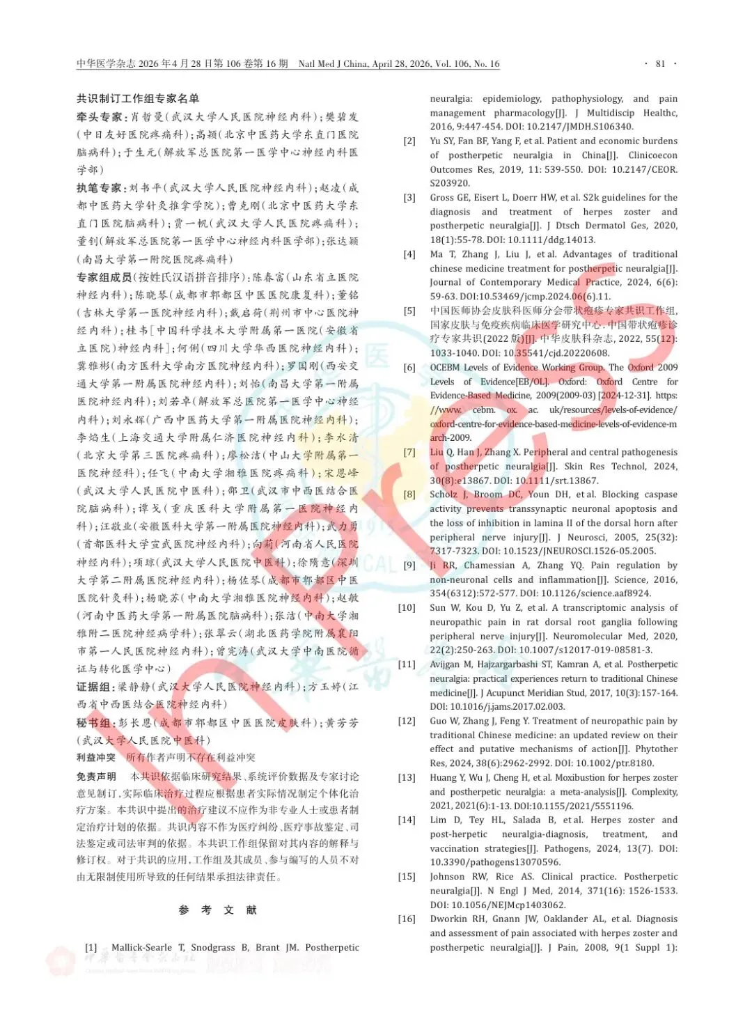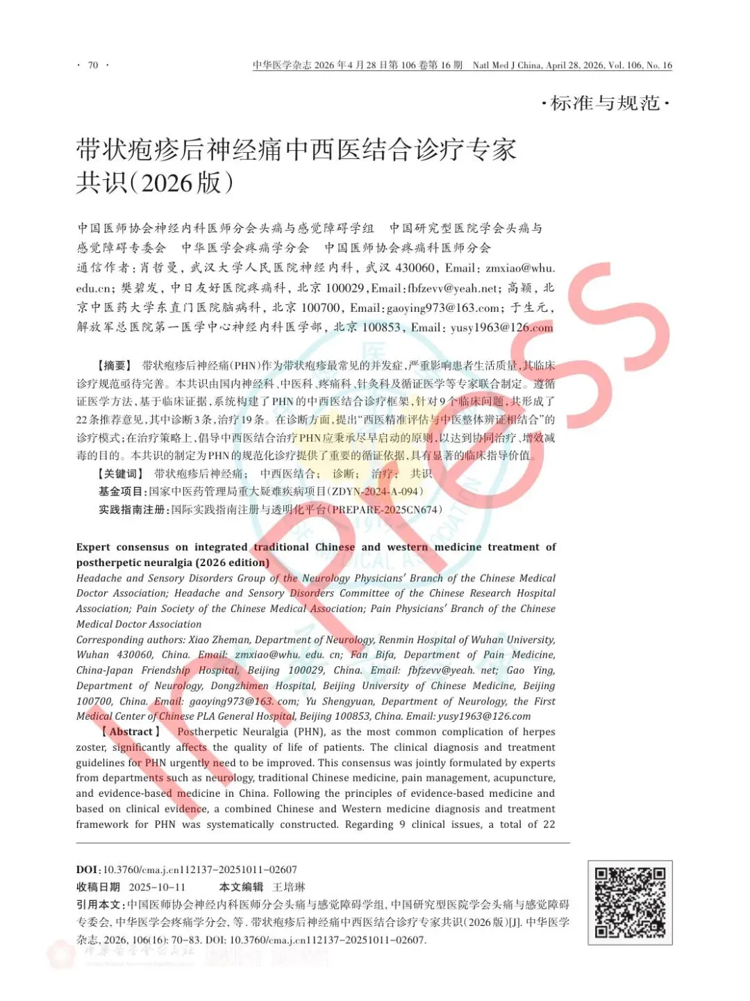 临床指南PDF《带状疱疹后神经痛中西医结合诊疗专家共识(2026版)》