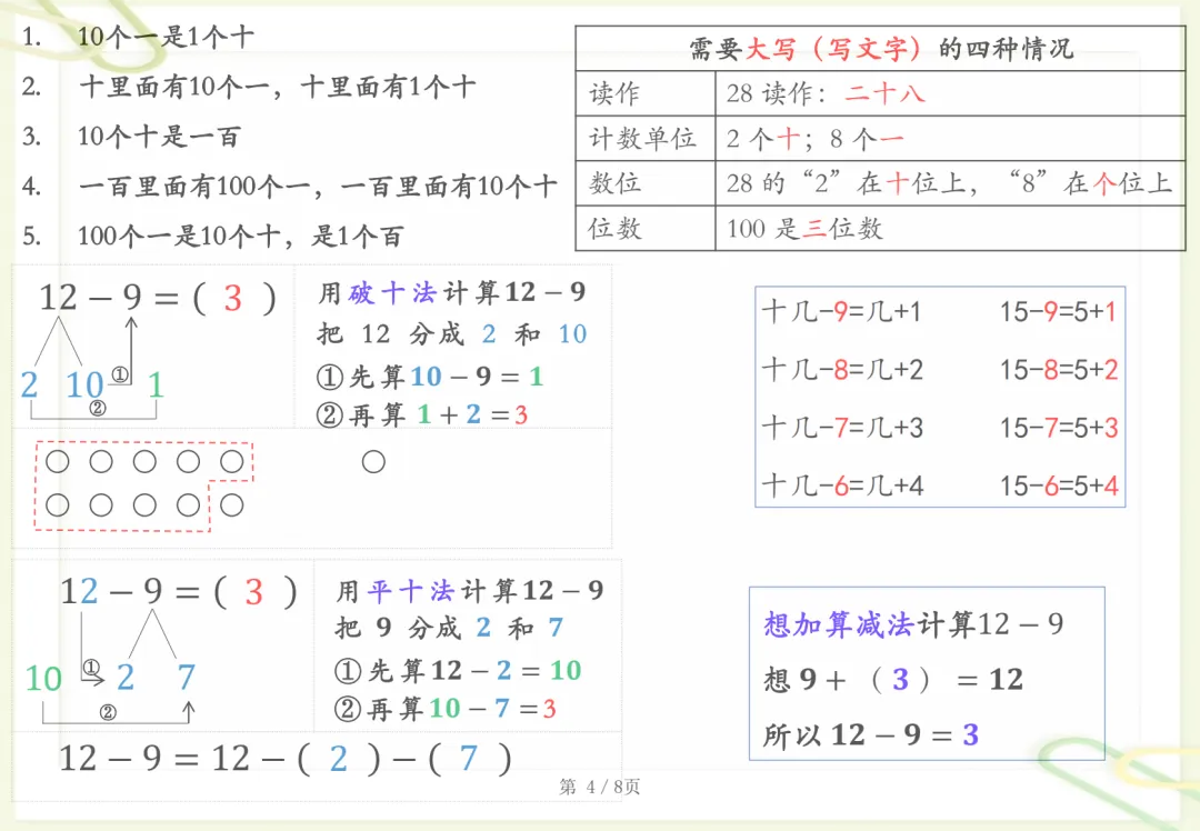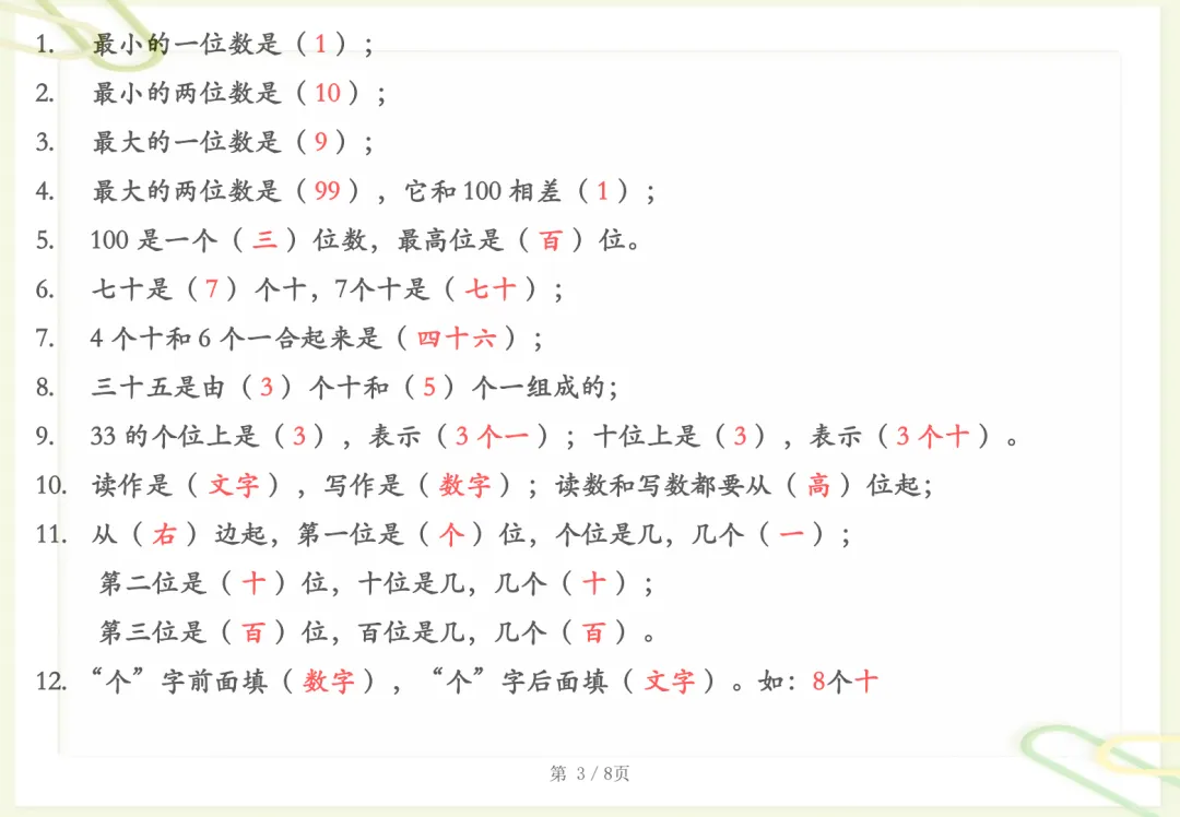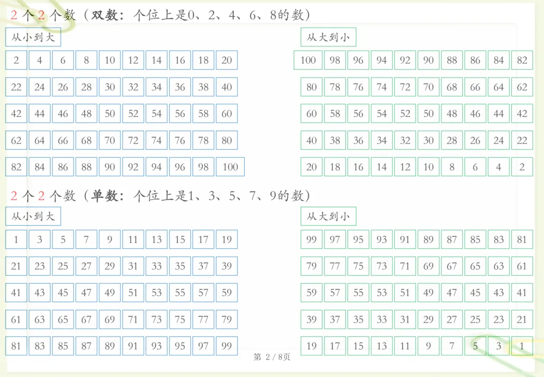 一年级下数学知识晨读材料,共8页,电子版可下载可打印,这份资料贴合一年级下册数学学习内容,适合作为孩子日常晨读与巩固练习使用,涵盖多个核心知识点与专项训练内容,帮助孩子在反复朗读和熟悉中加深对基础知识的理解与记忆,进一步打牢数学学习基础。需要的家长可以尽快下载打印出来,让孩子读一读、练一练。