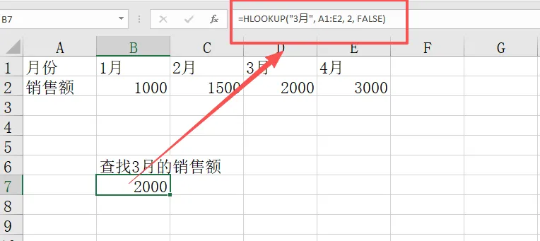 公式:=HLOOKUP(指定值, 选定区域, 返回值行号, [匹配方式])