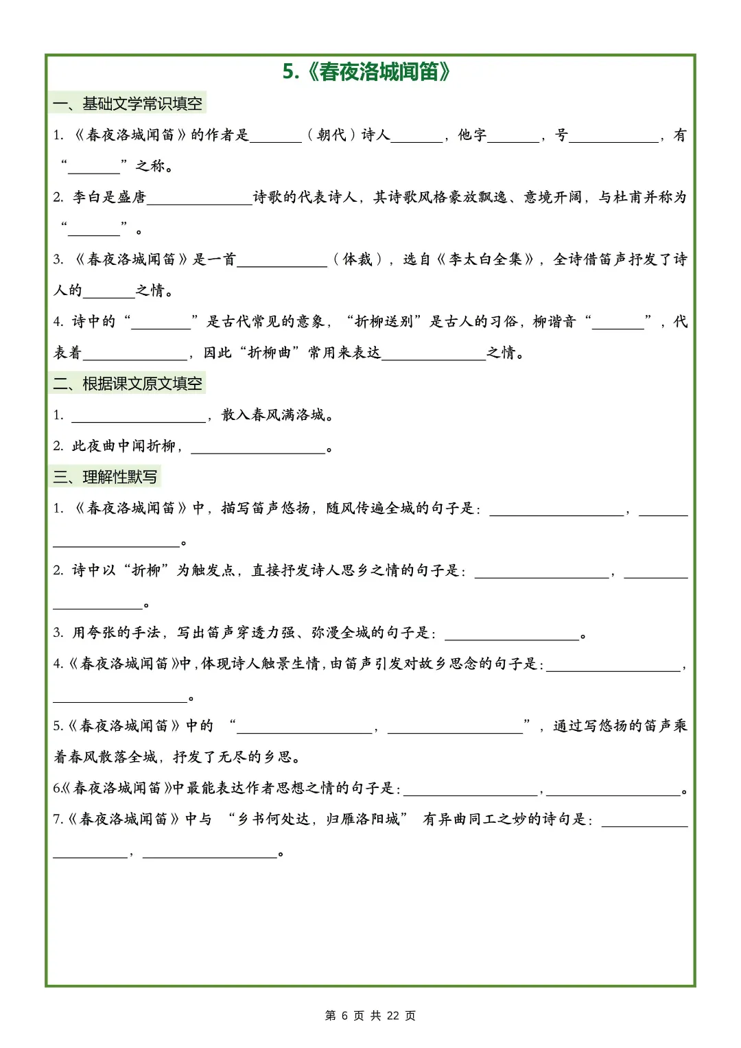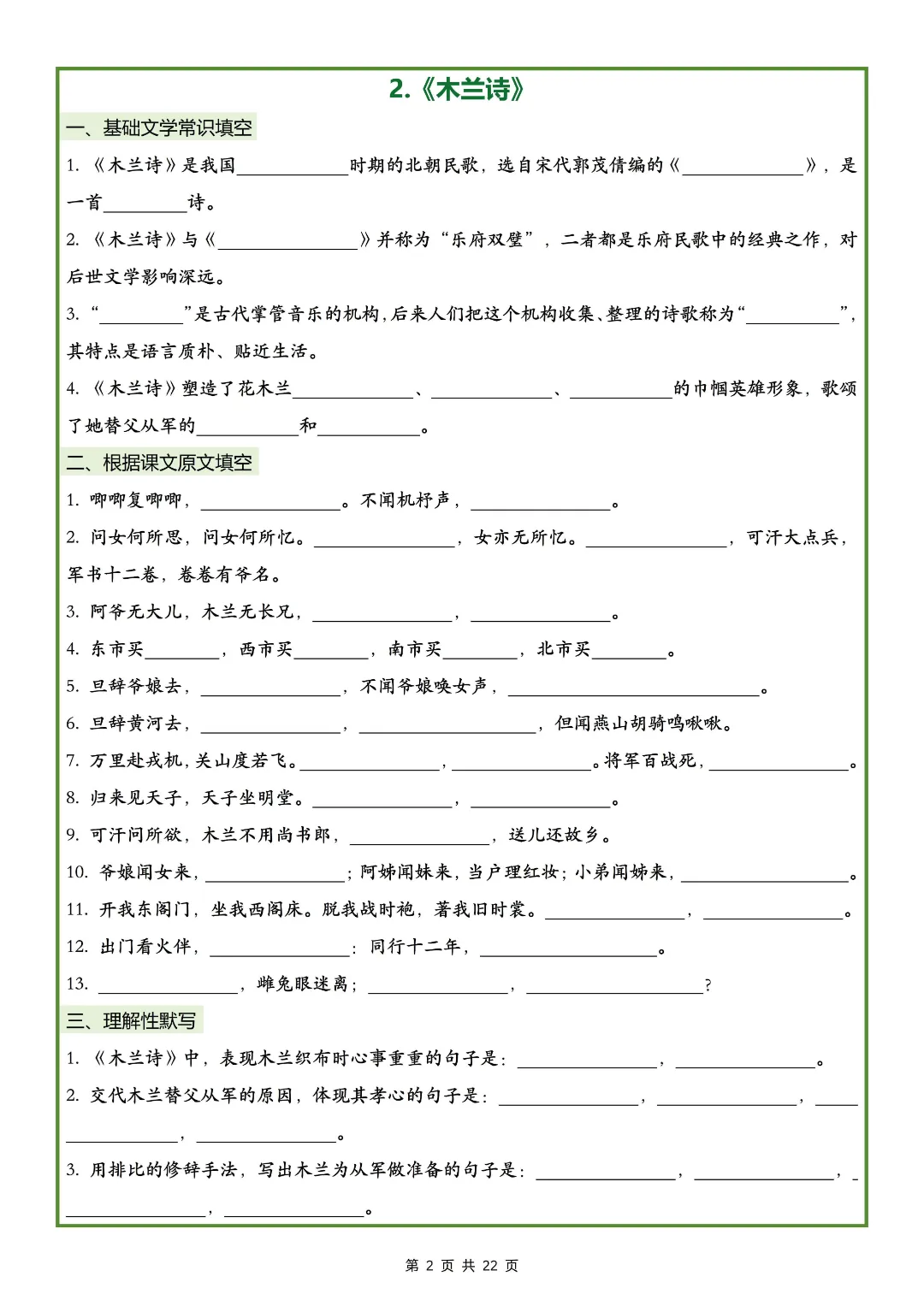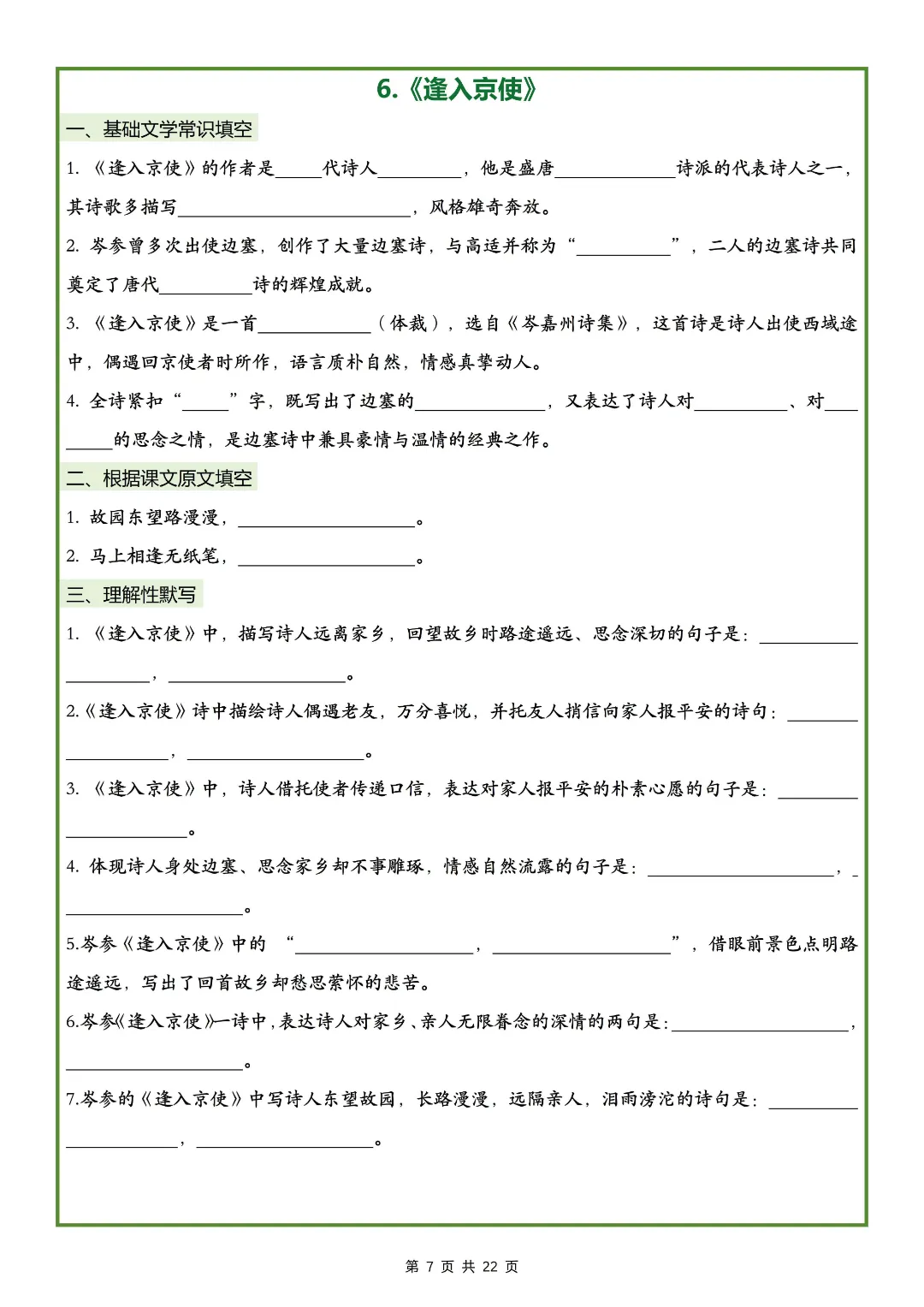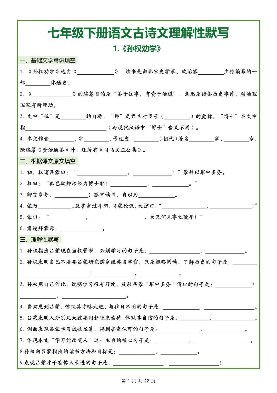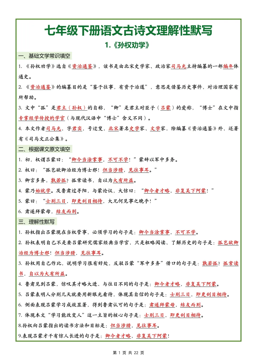 今日给家长数学朋友们分享的是:26年春新七年级下册部编版语文《全册古诗文理解性默写》附答案解析‖电子版可打印